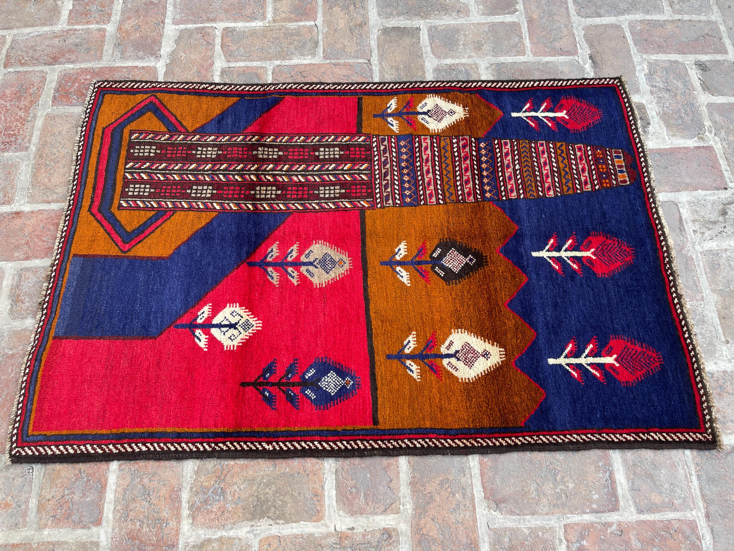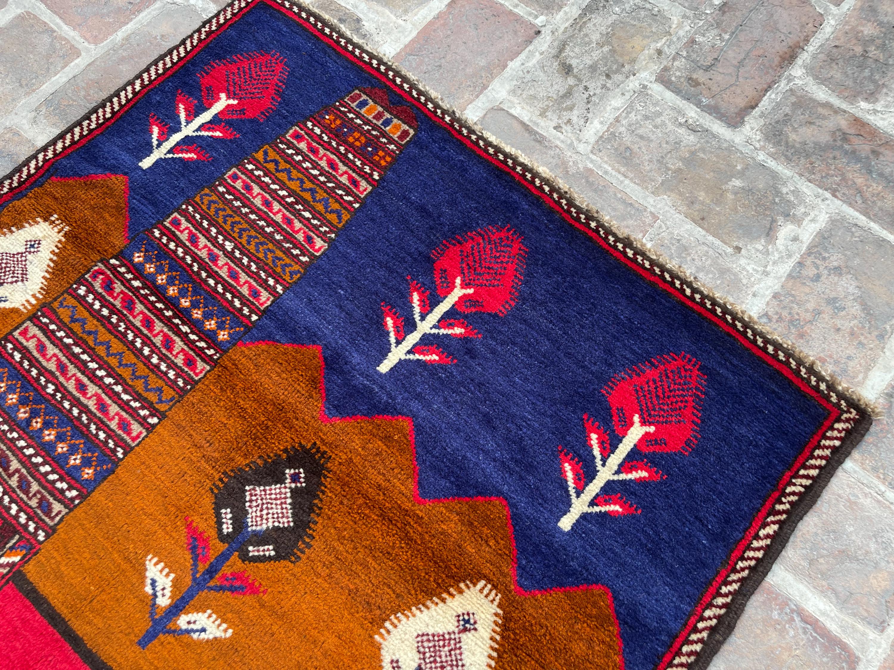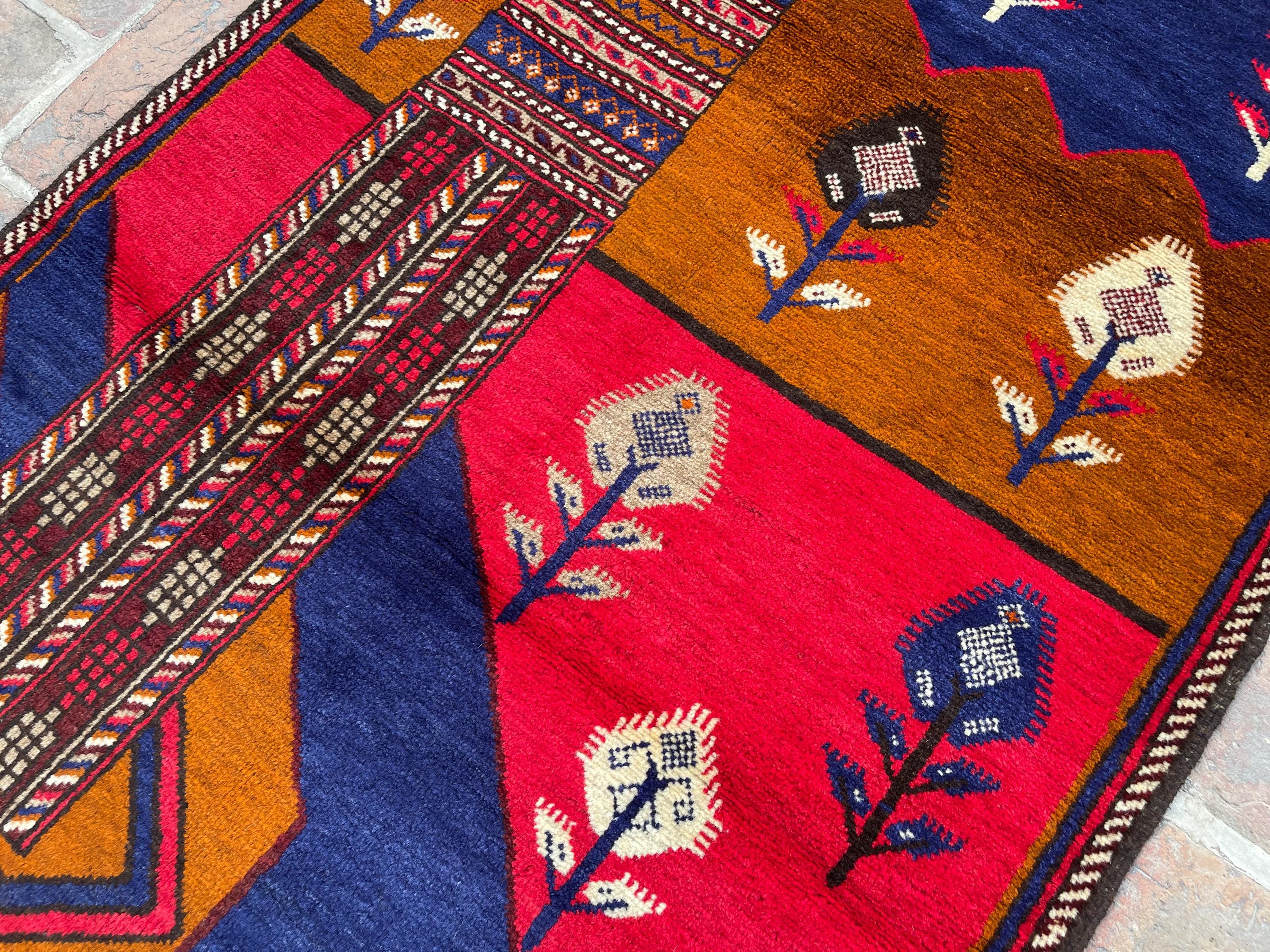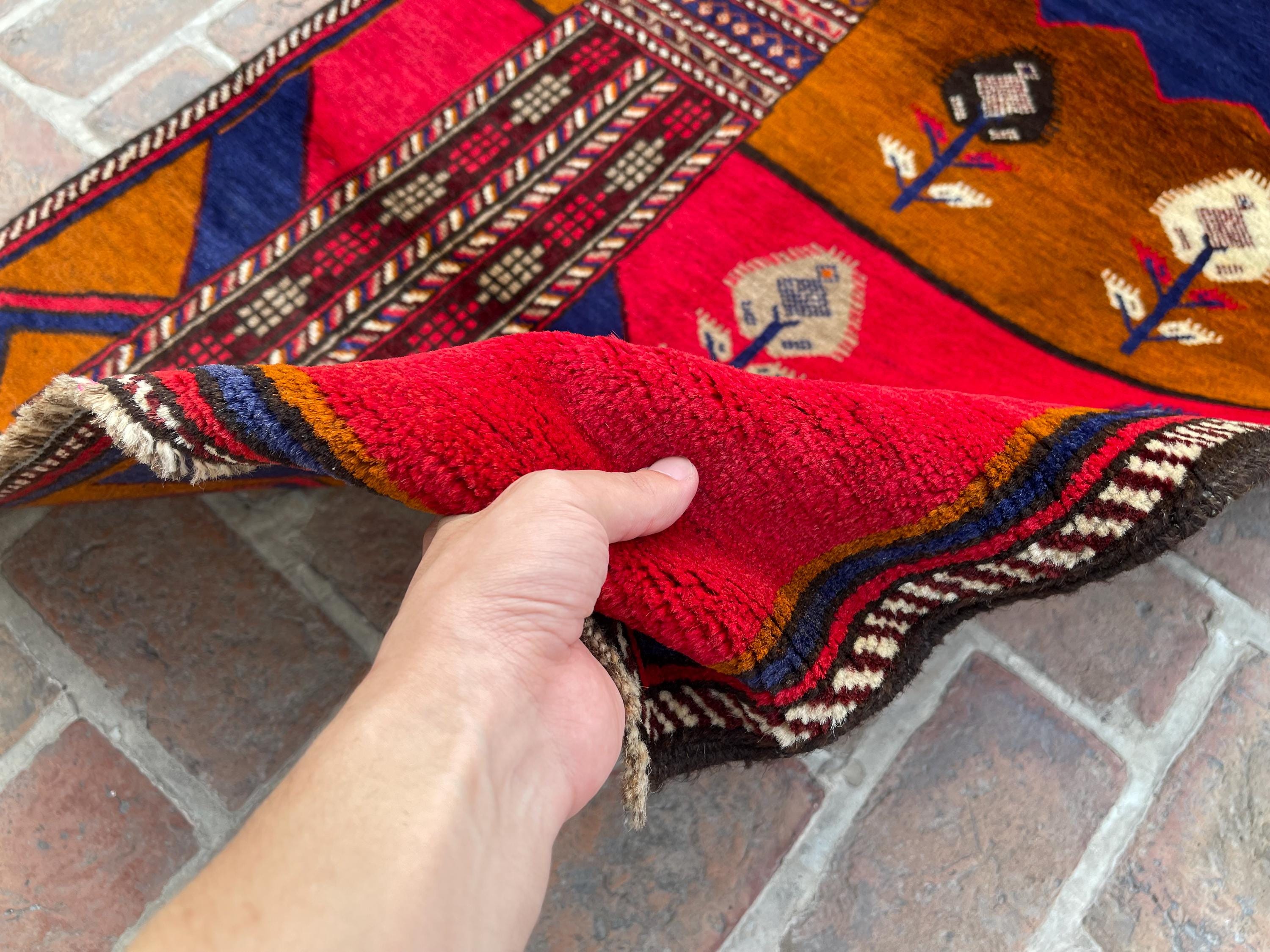 FREE SHIPPING 3x5 Red Blue Pictorial Baluch Rug - Scenery Scene Trees River Tribal Nomadic Oriental Rug - Wall Hanging Accent Carpet 3x4'5