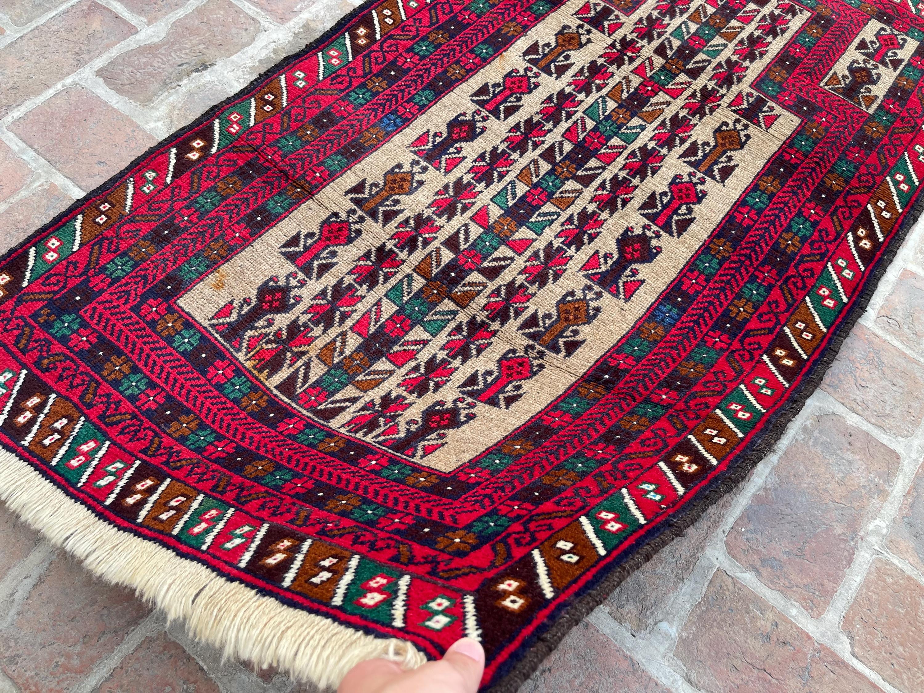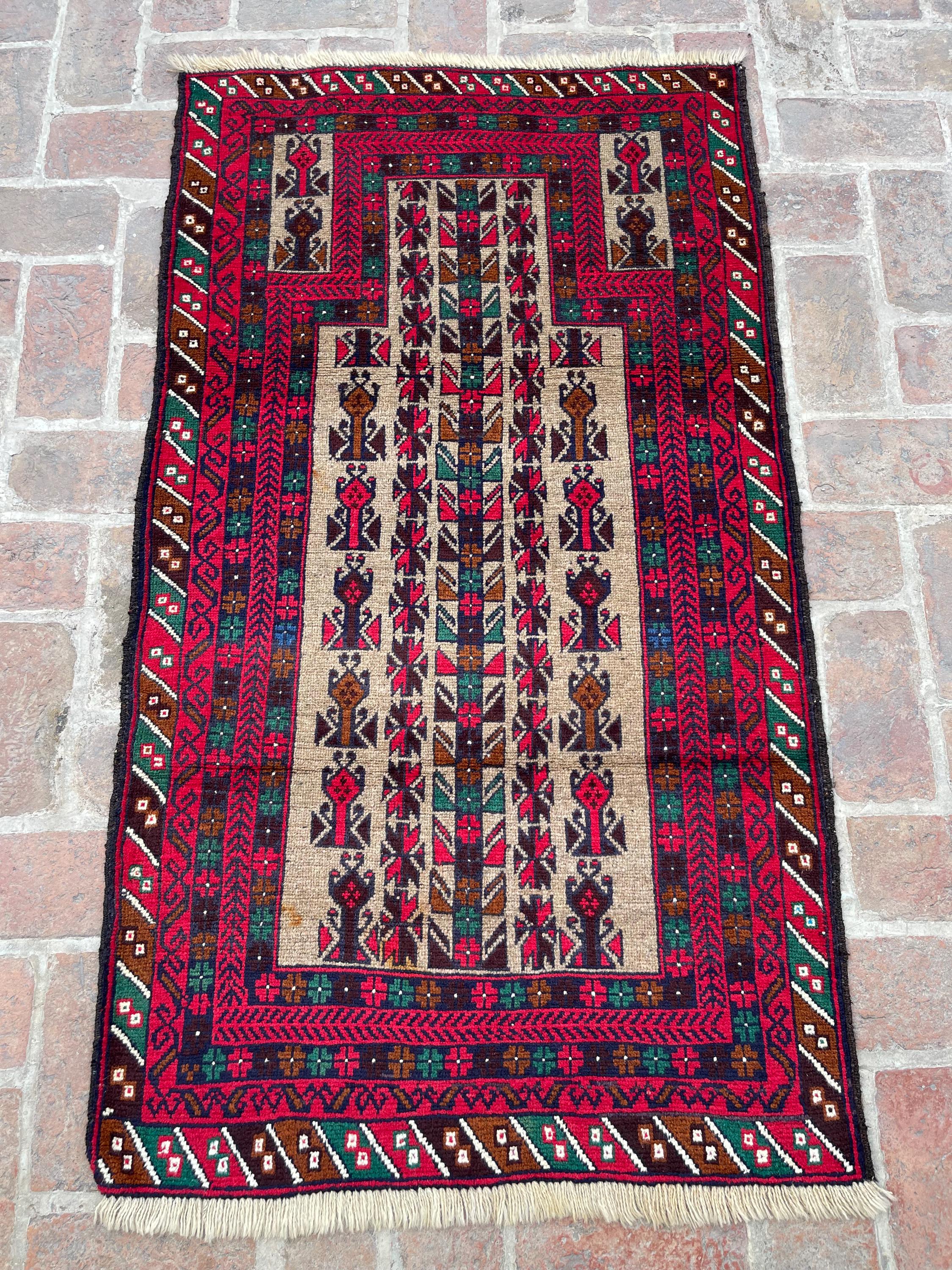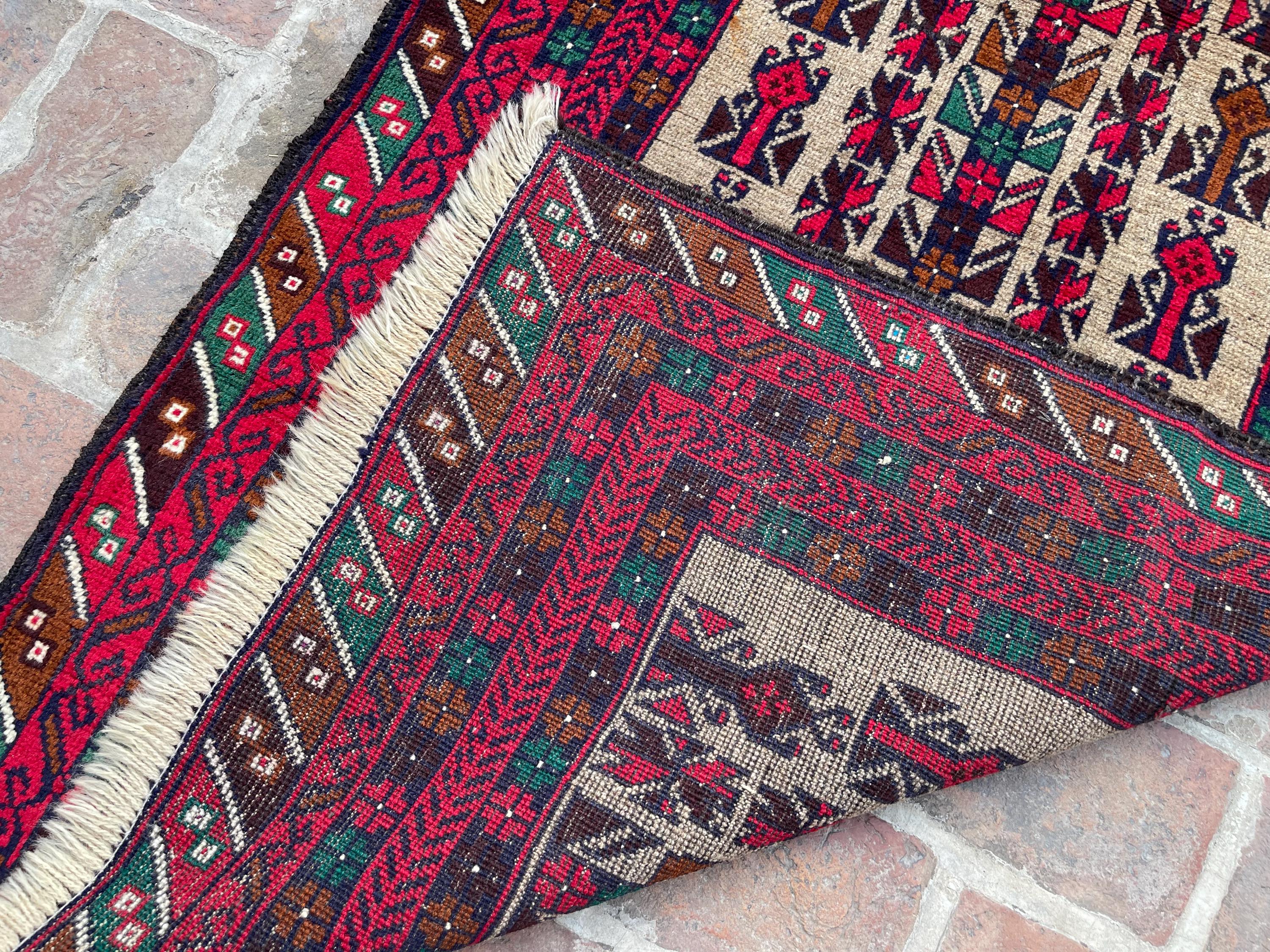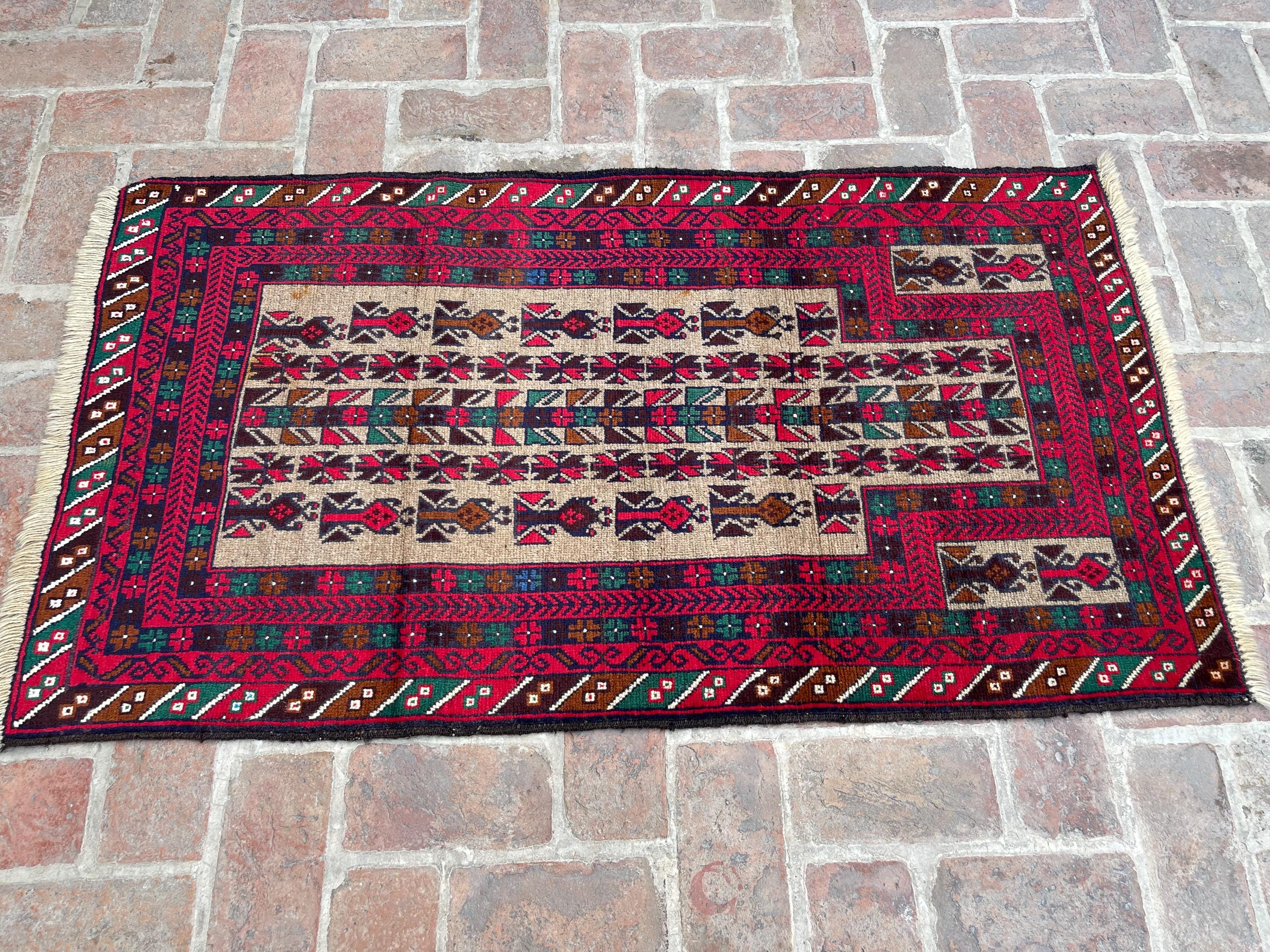 FREE SHIPPING 3x5 Beige Red Baluch Tribal Rug - Handmade Wool Rug - Turkmen Prayer Oriental Rug - Bokhara Wall Hanging Carpet 2.11x5.1 ft