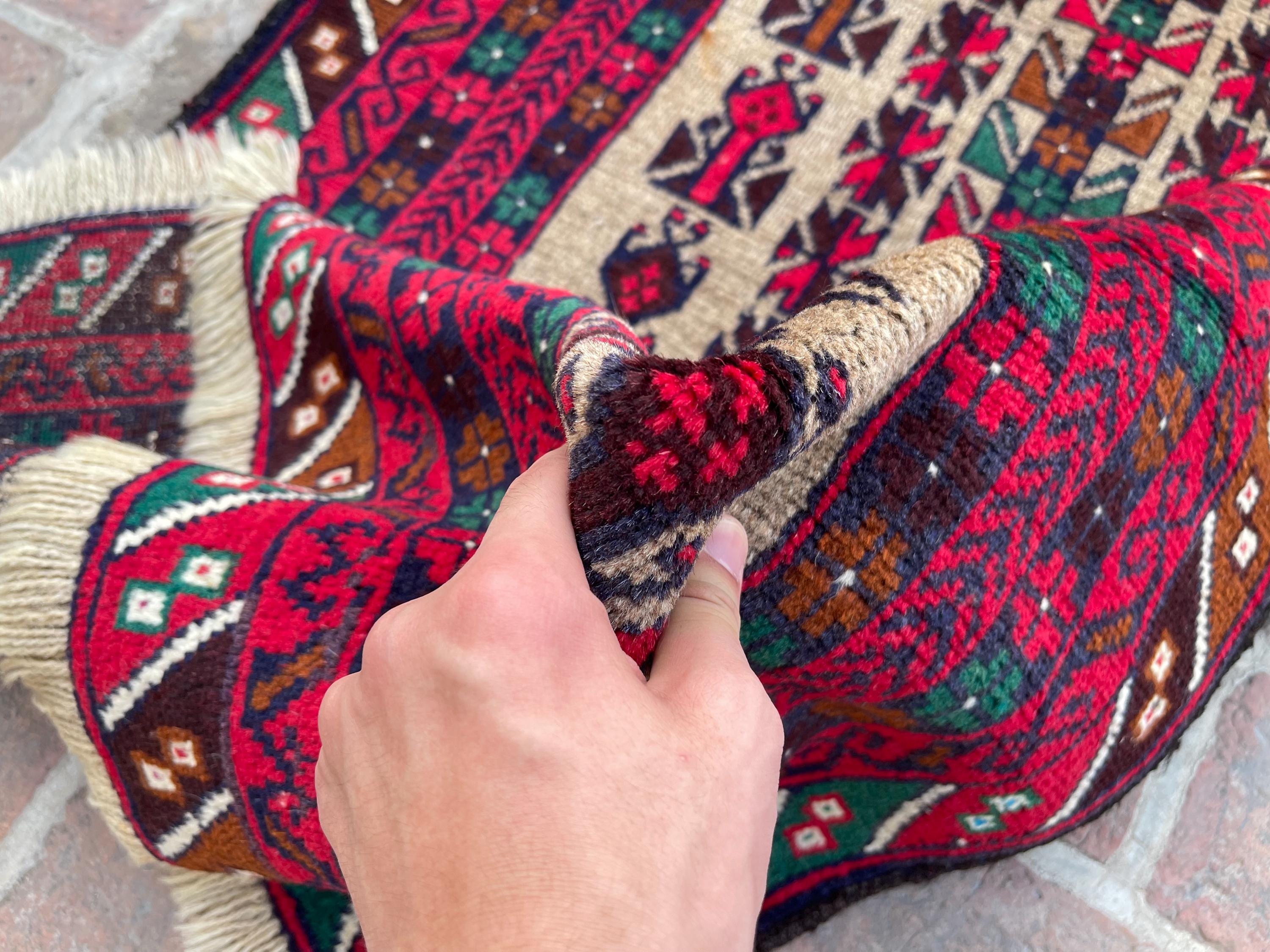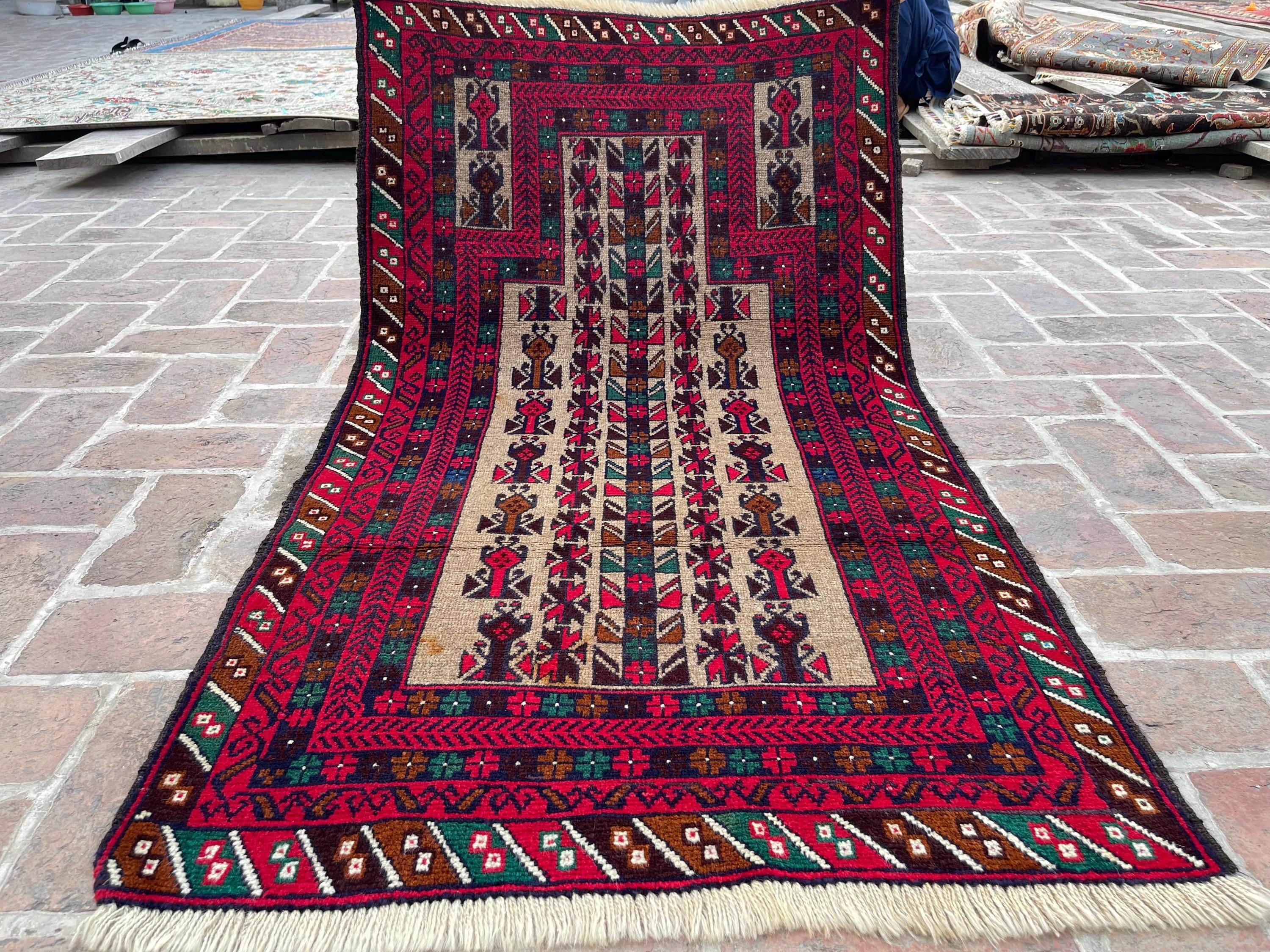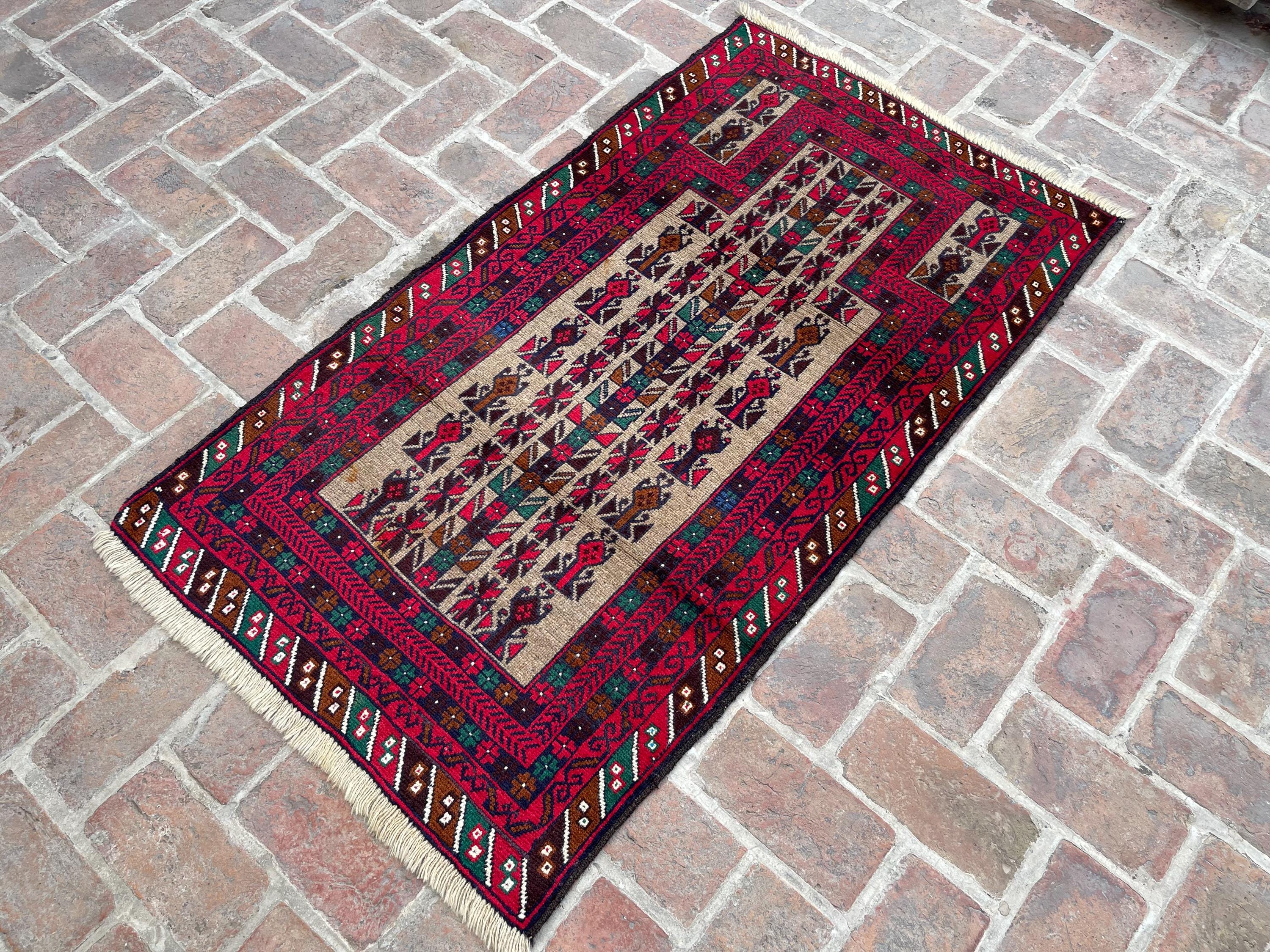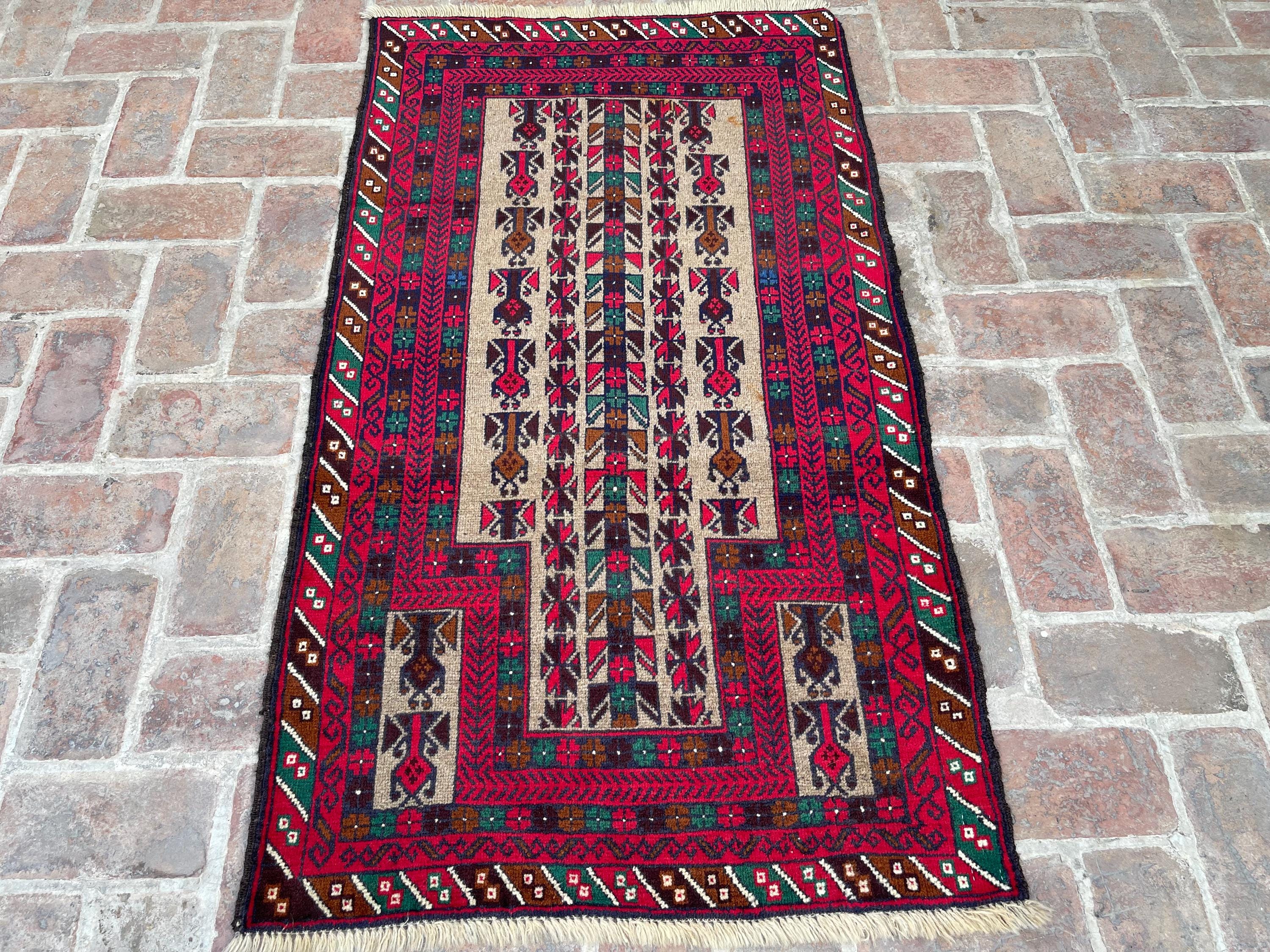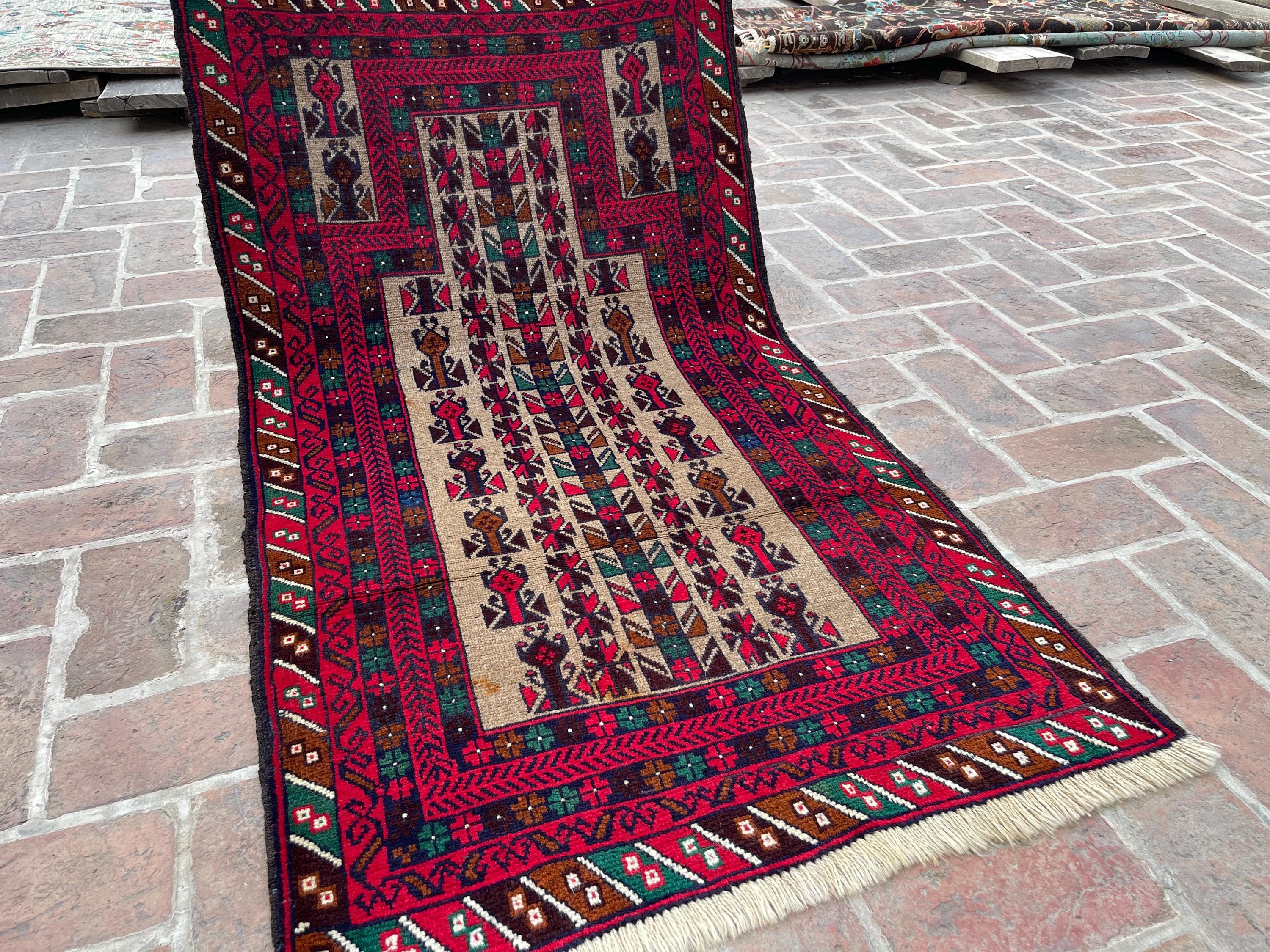 FREE SHIPPING 3x5 Beige Red Baluch Tribal Rug - Handmade Wool Rug - Turkmen Prayer Oriental Rug - Bokhara Wall Hanging Carpet 2.11x5.1 ft