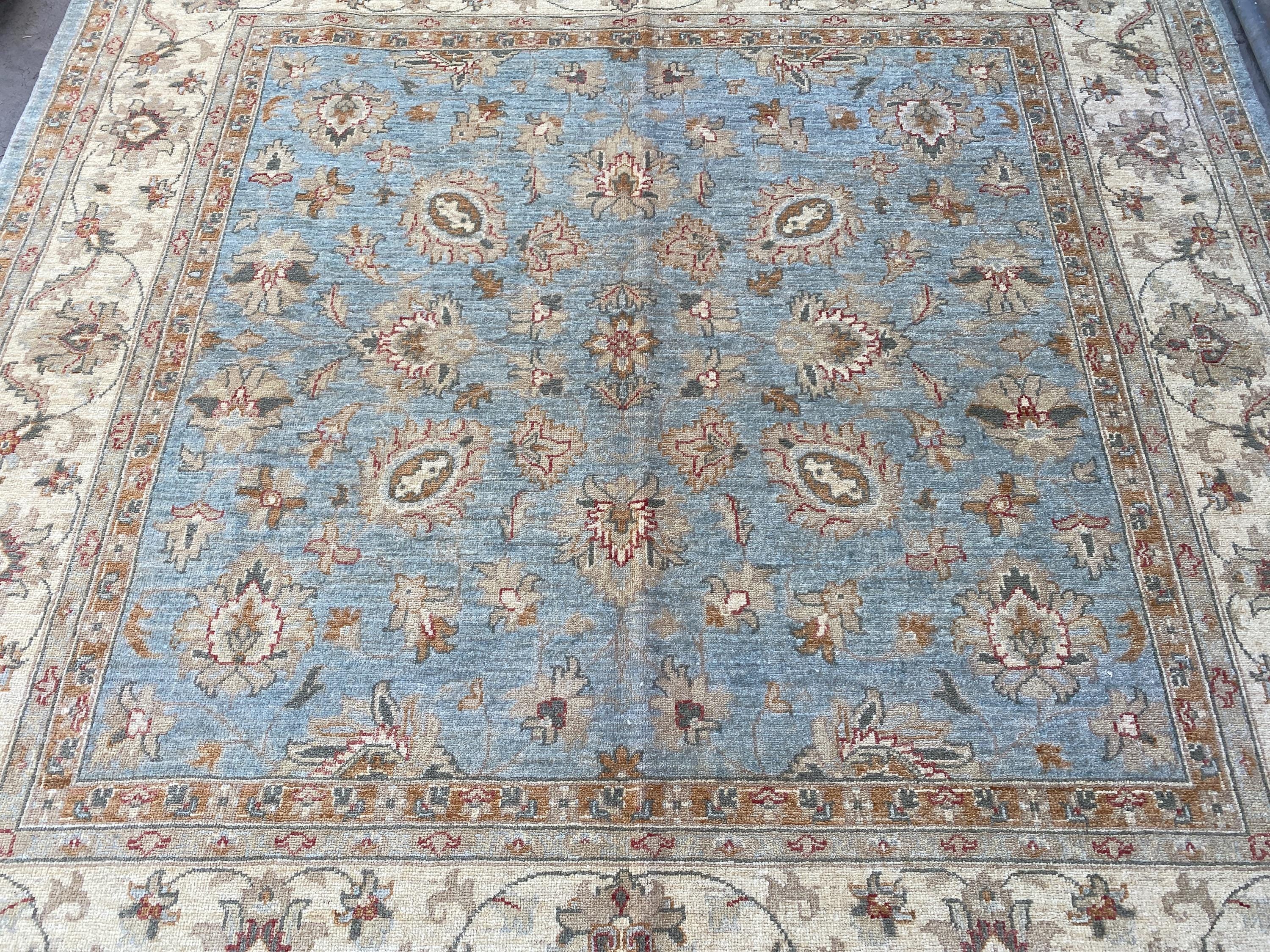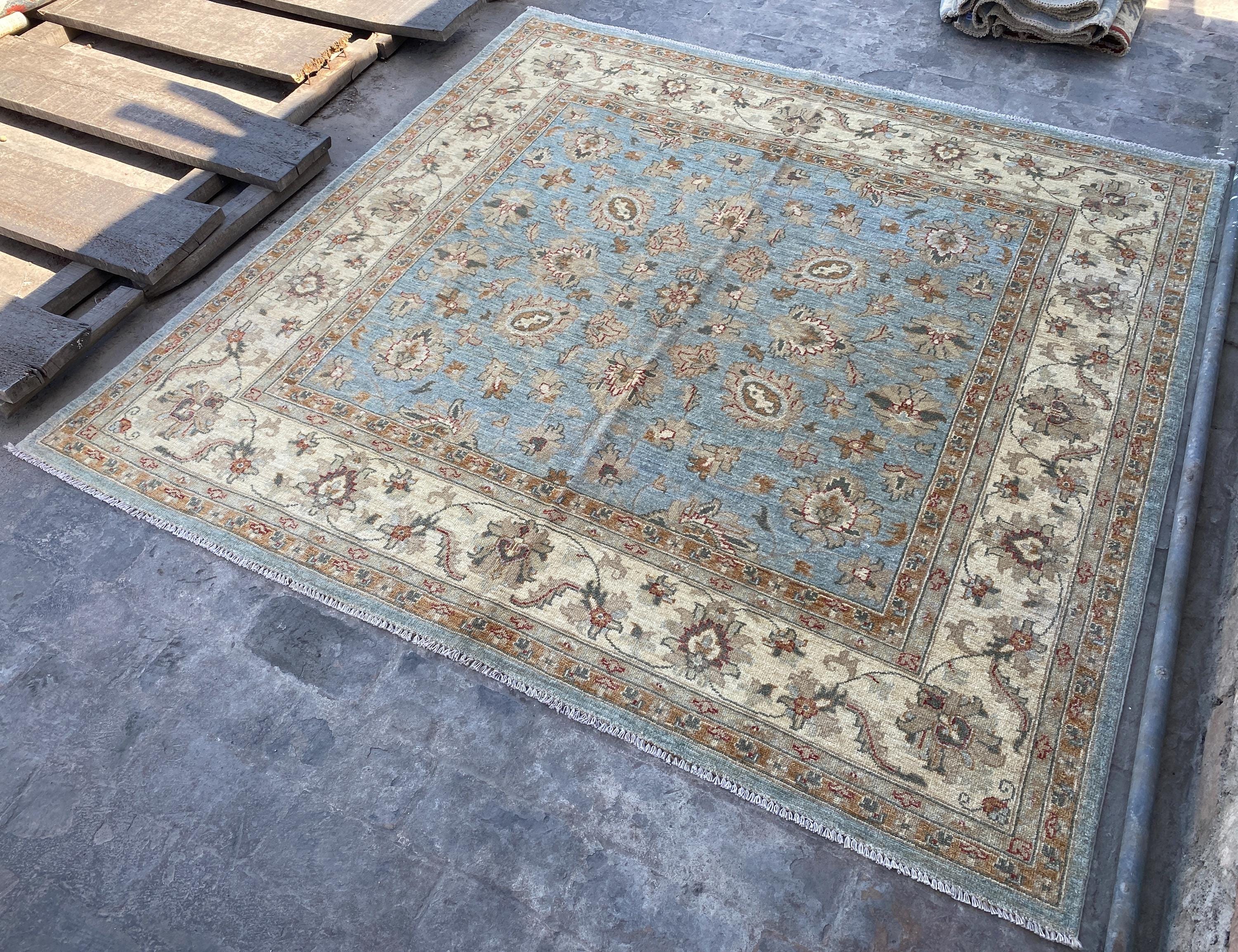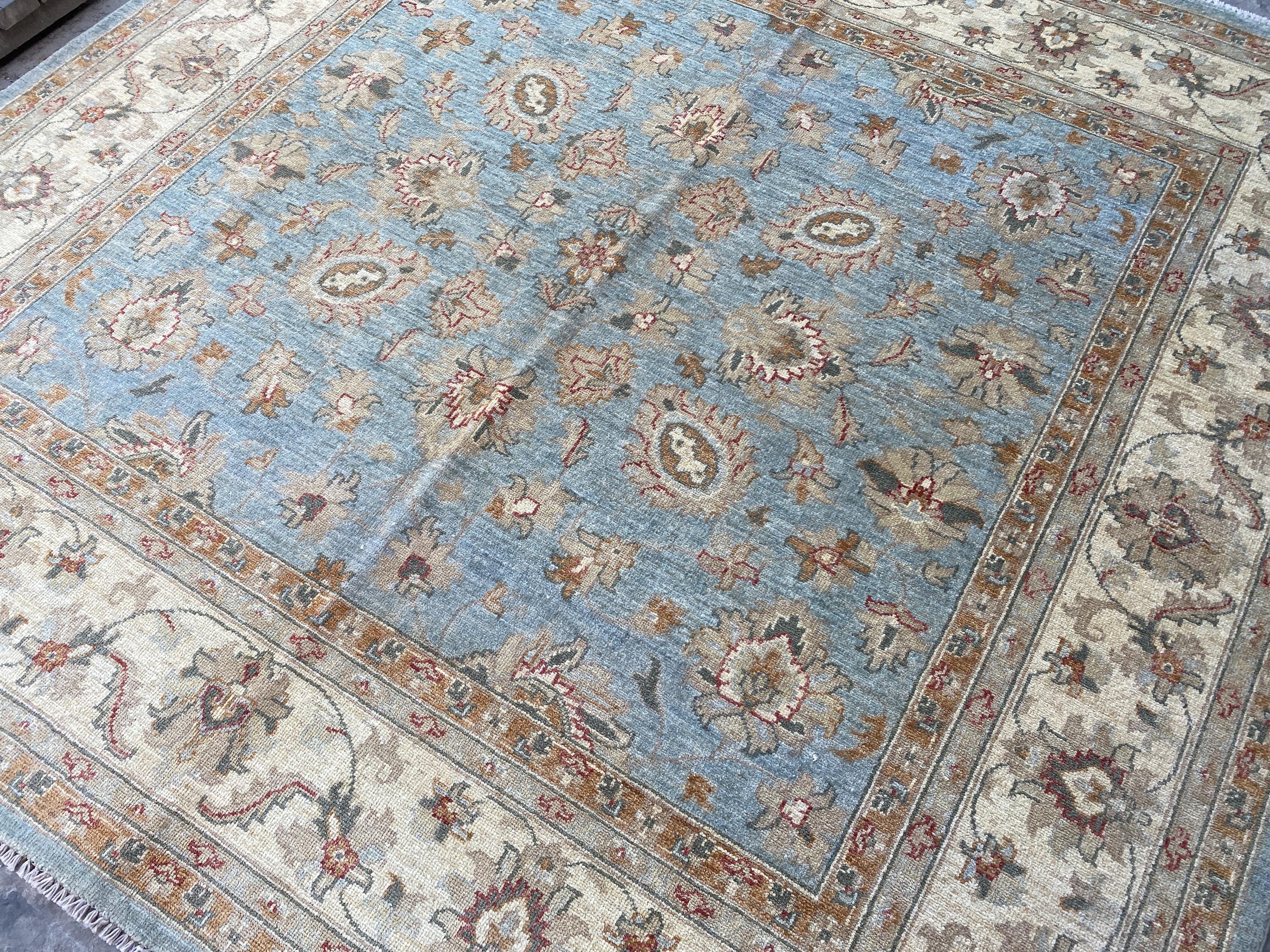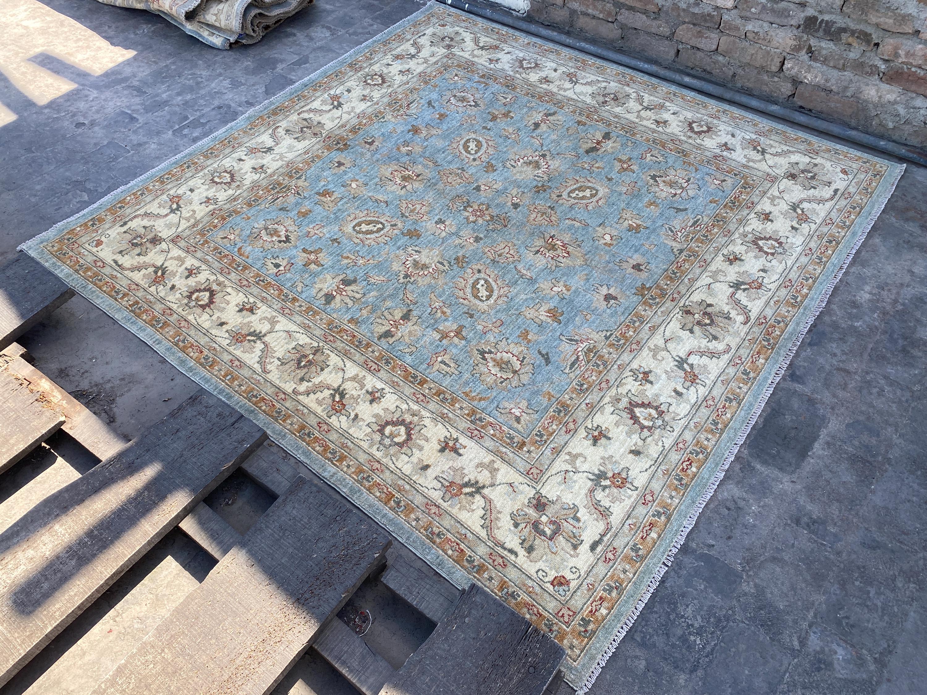 6x6 Pale Blue Oriental Floral Area Rug - Square Ziegler Muted Wool Rug - Afghan Handmade Tribal Rug - Handspun Wool Durable Turkmen Carpet