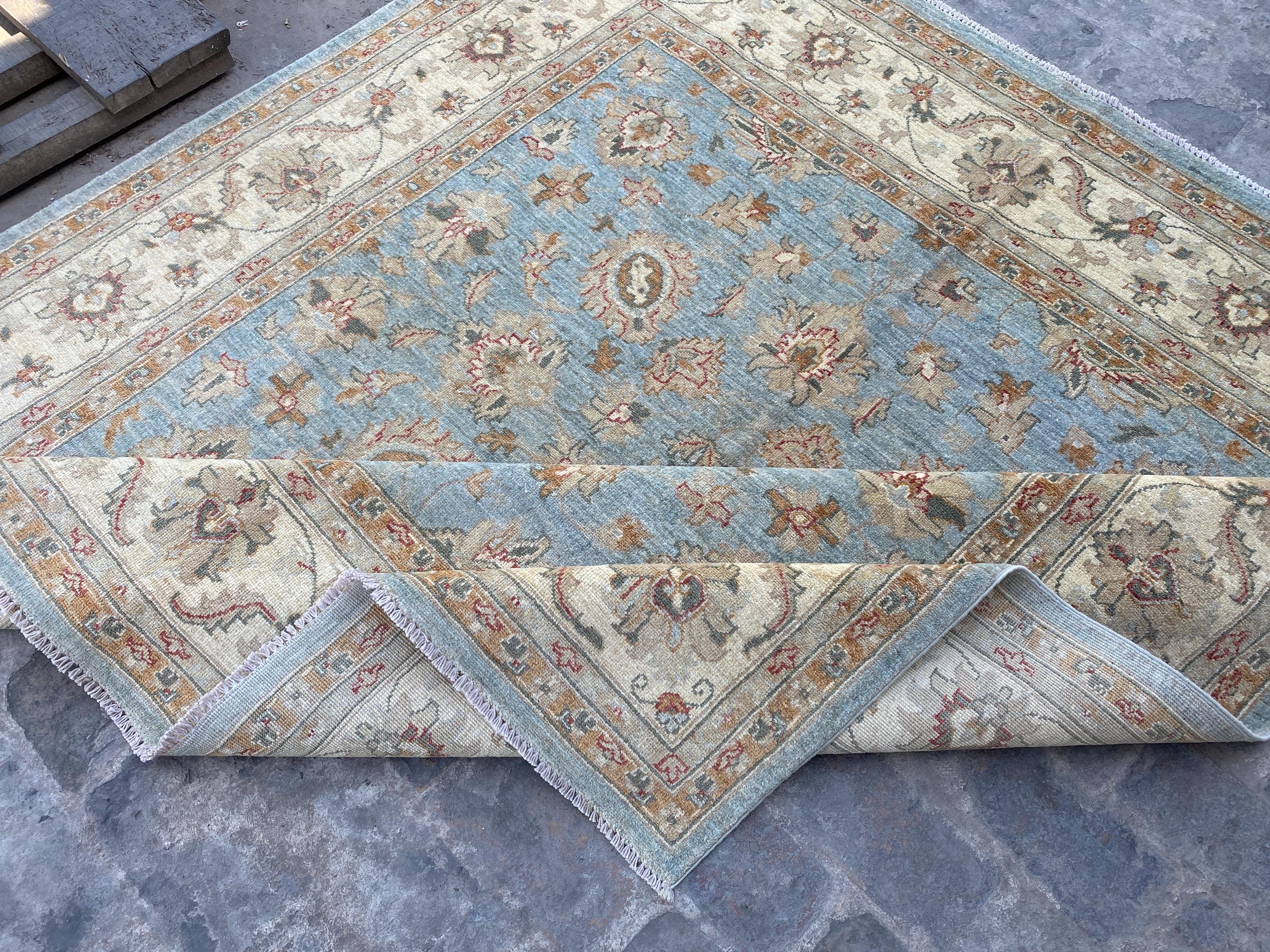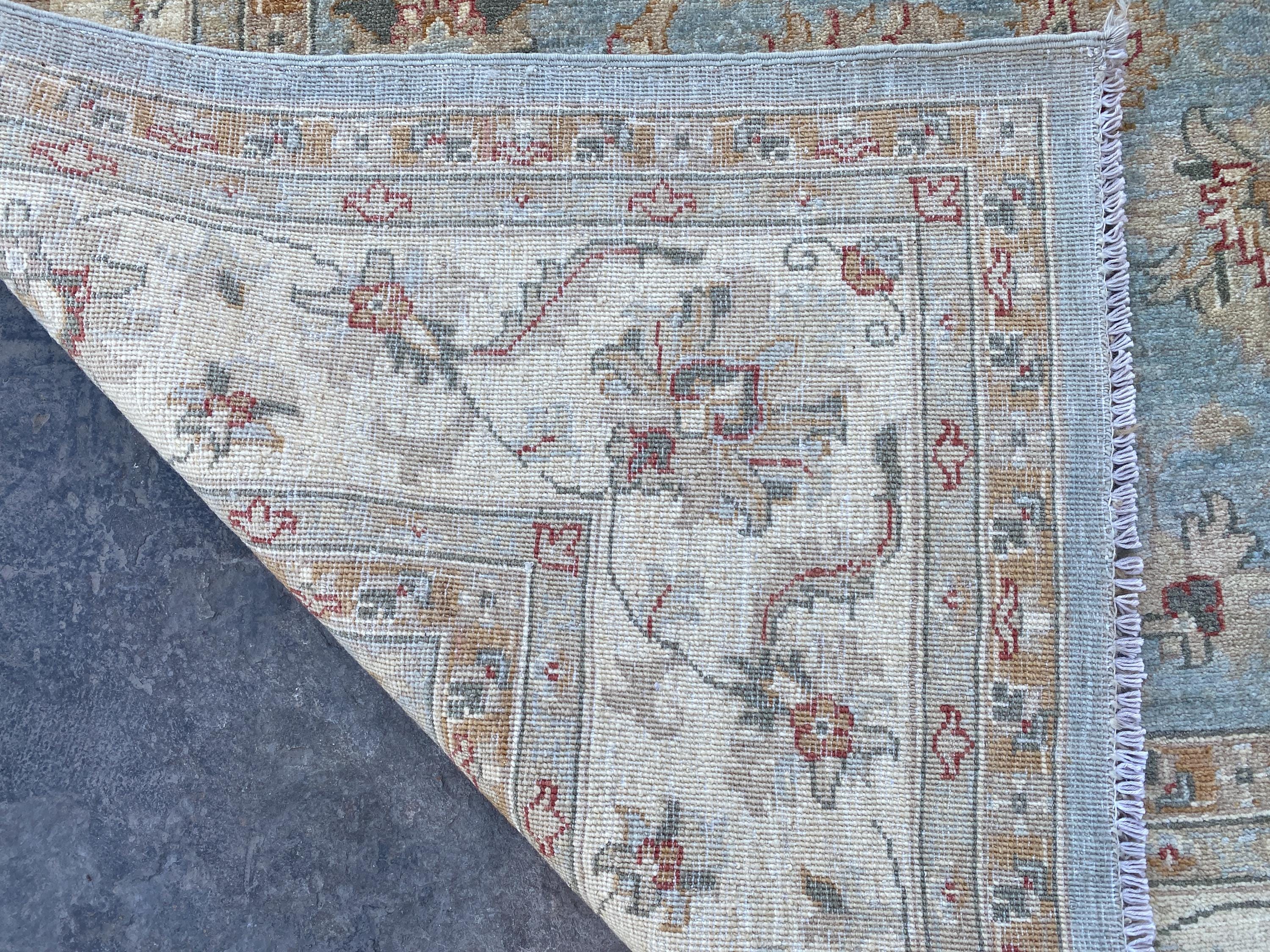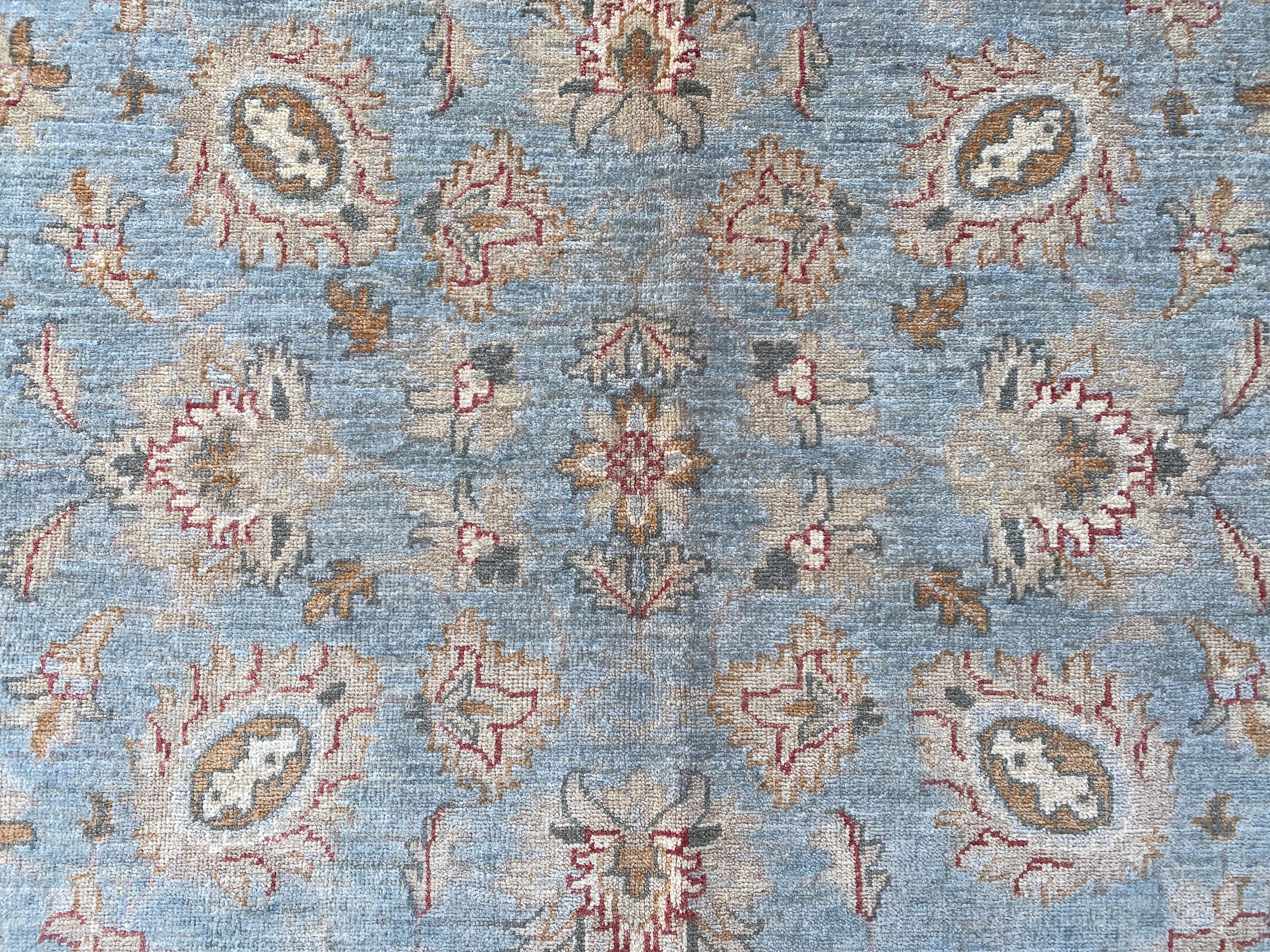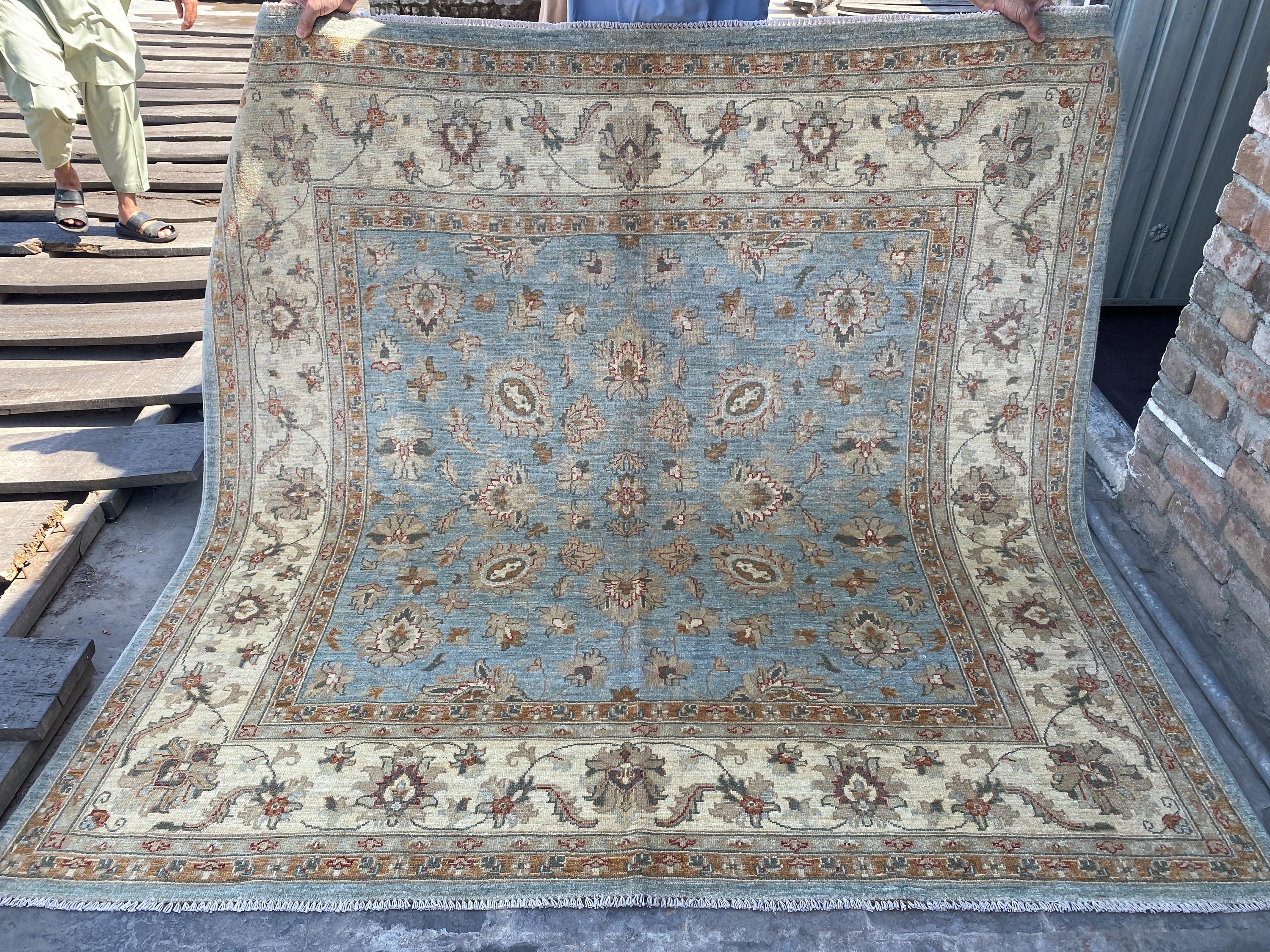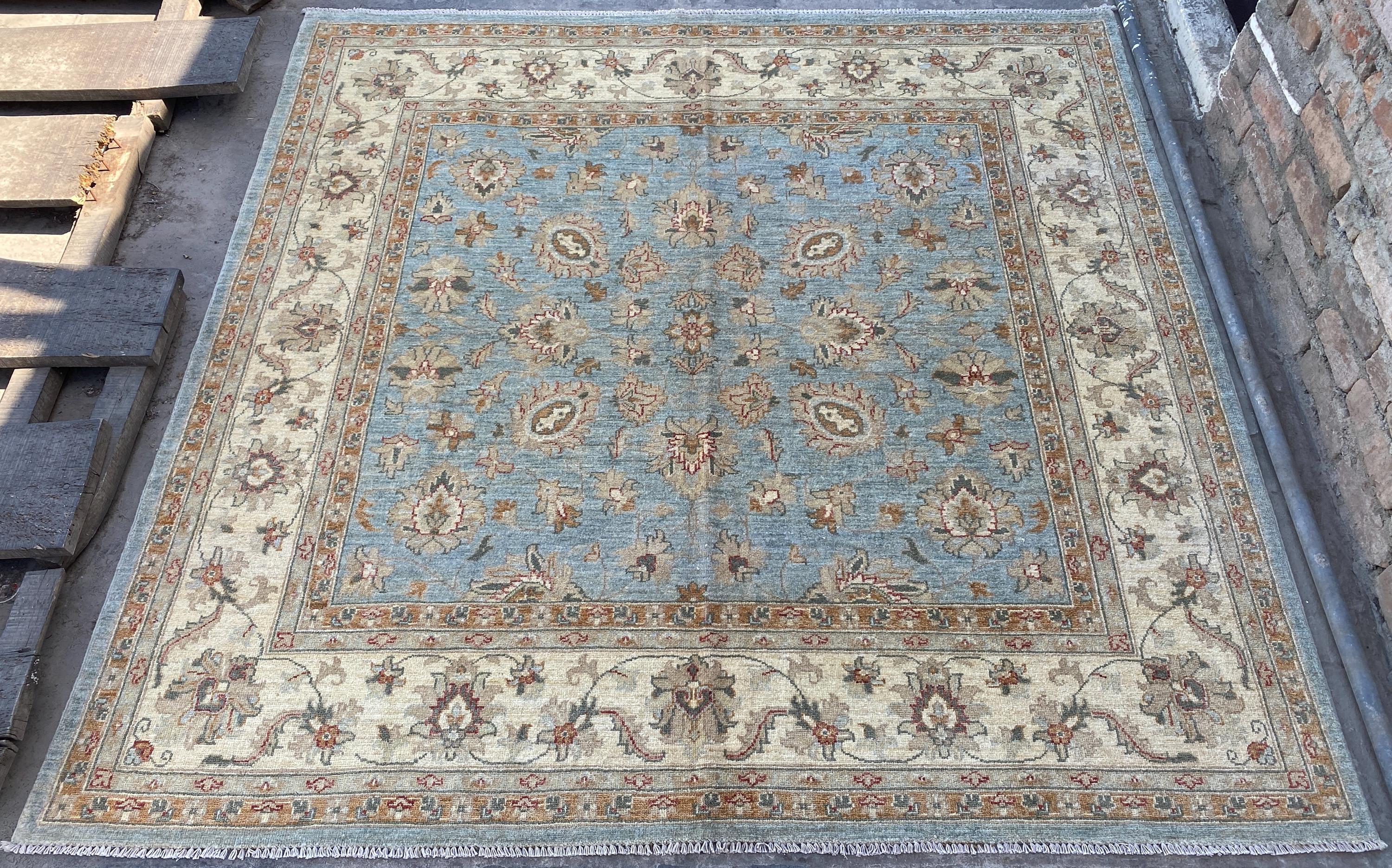 6x6 Pale Blue Oriental Floral Area Rug - Square Ziegler Muted Wool Rug - Afghan Handmade Tribal Rug - Handspun Wool Durable Turkmen Carpet