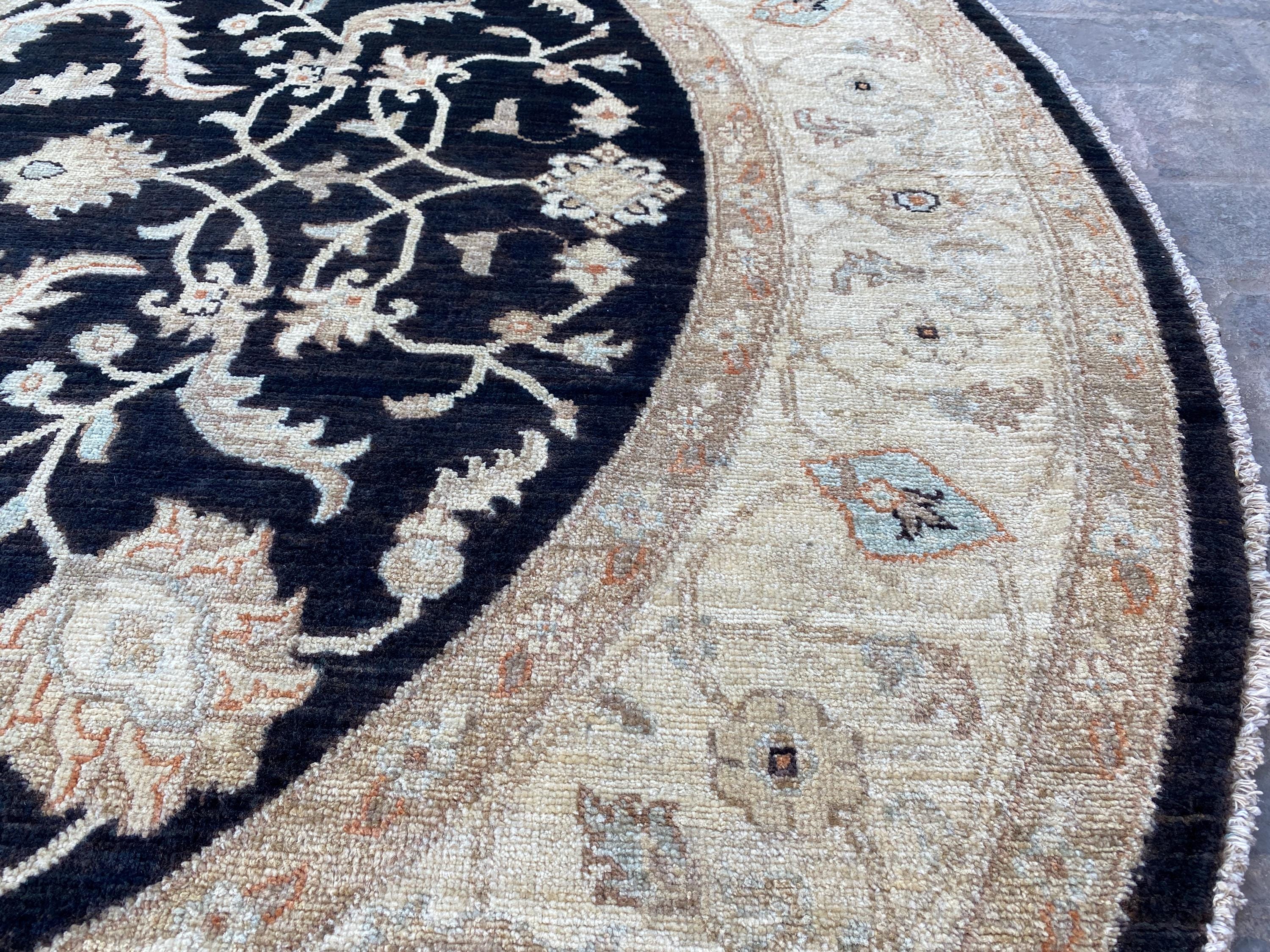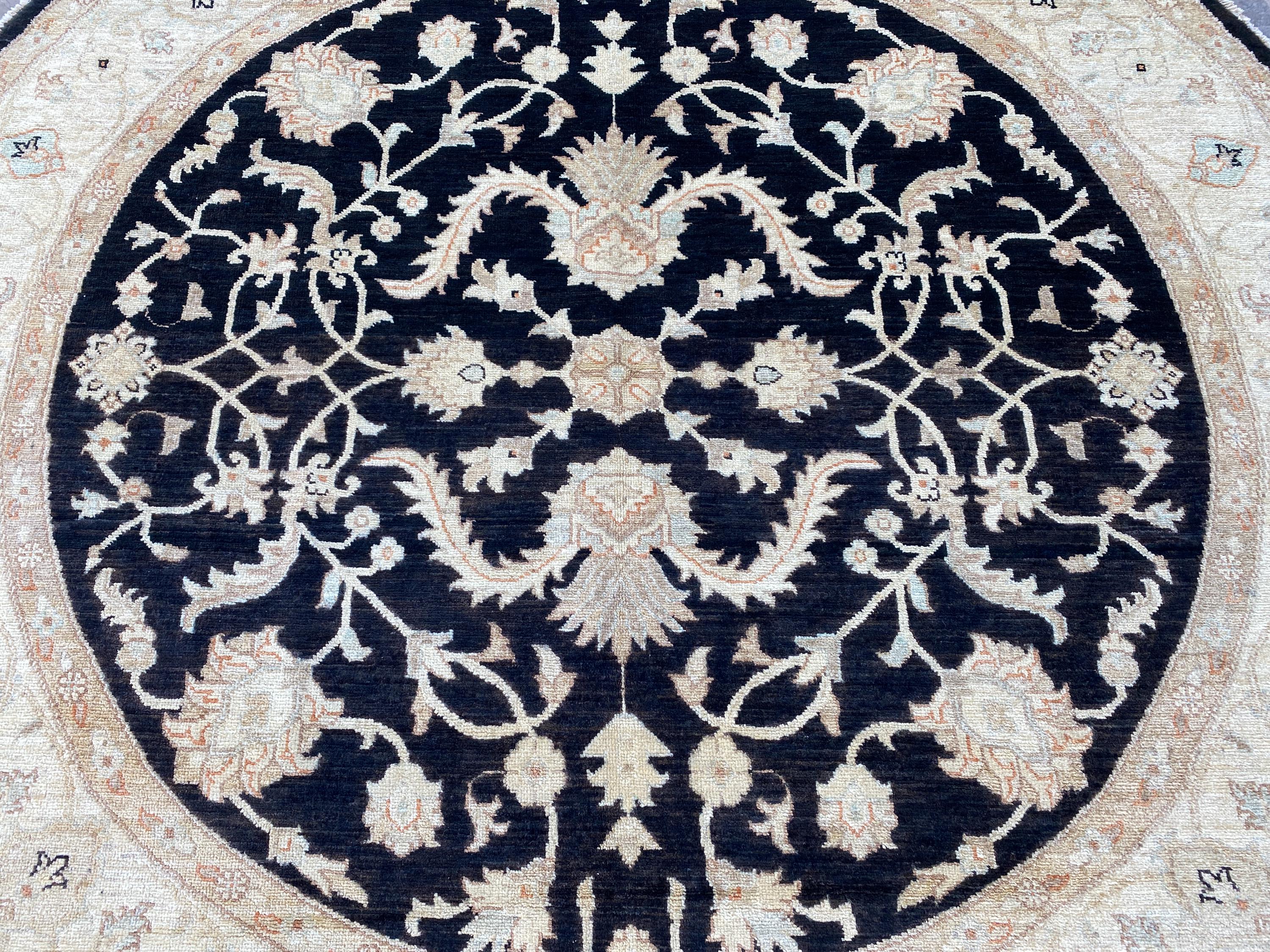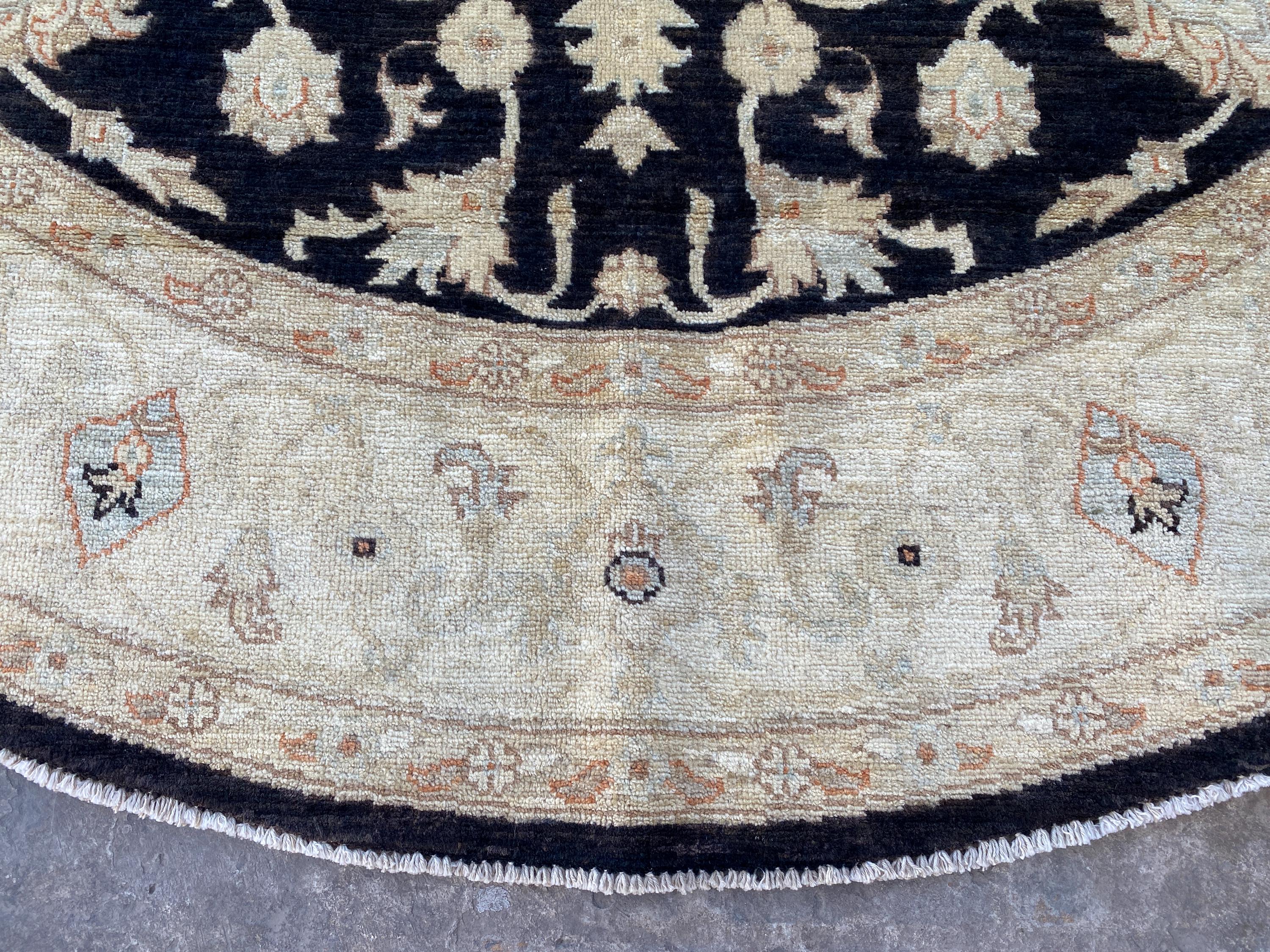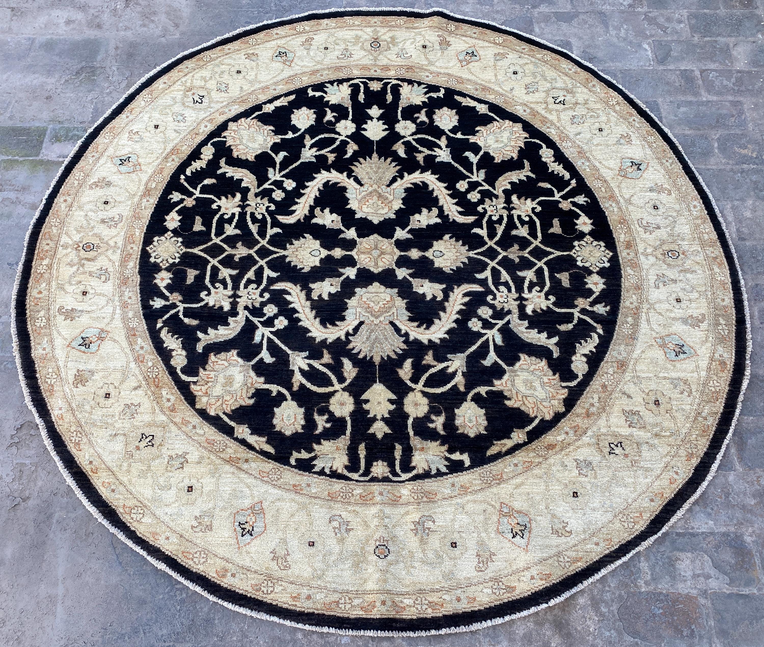 6x6 Black Beige Afghan Round Area Rug - Handspun Wool Turkmen Chobi Oriental Circle Rug - Floral Hand Knotted Ziegler Turkish Oushak Carpet
