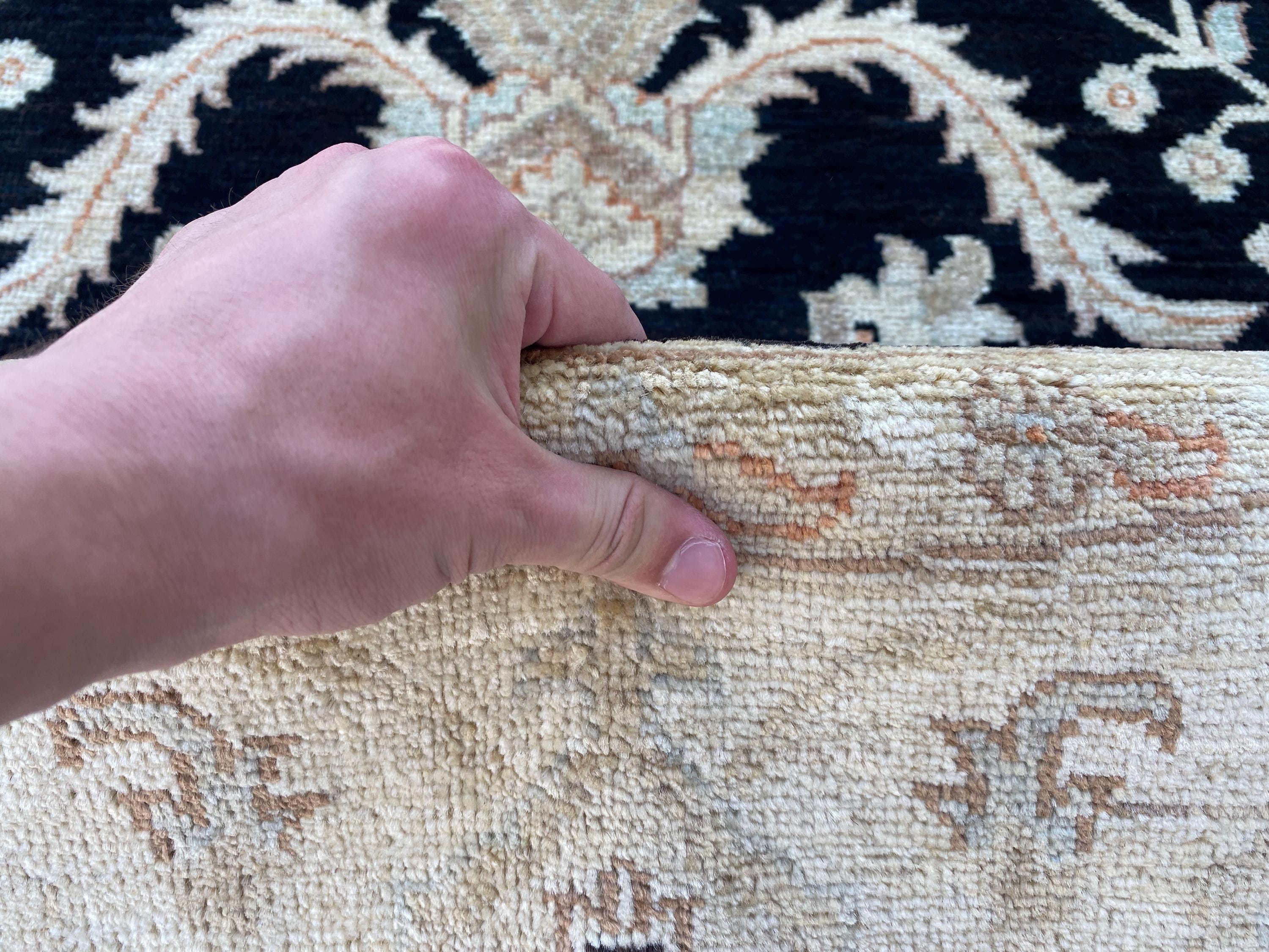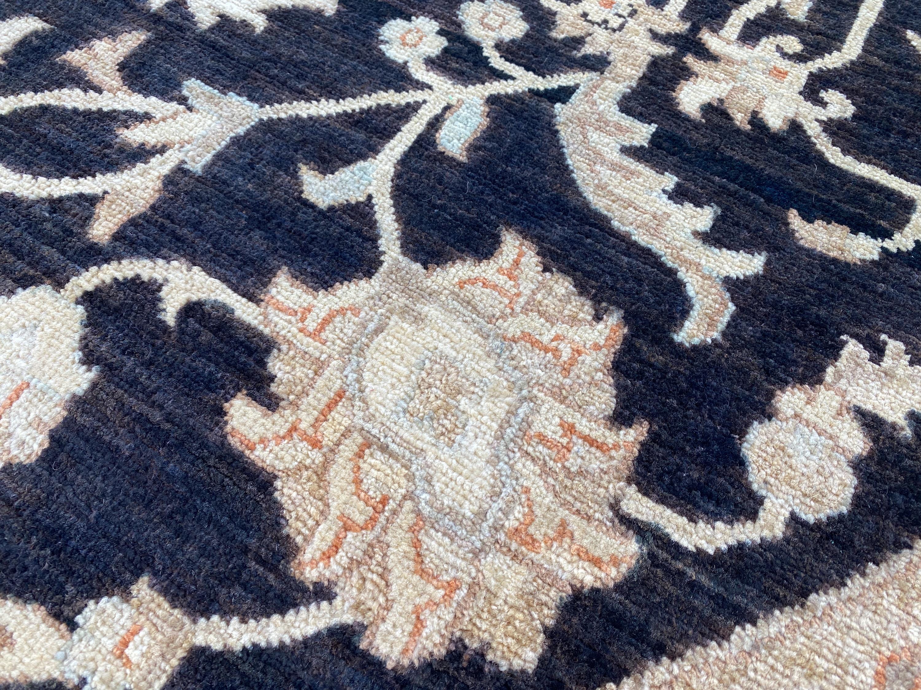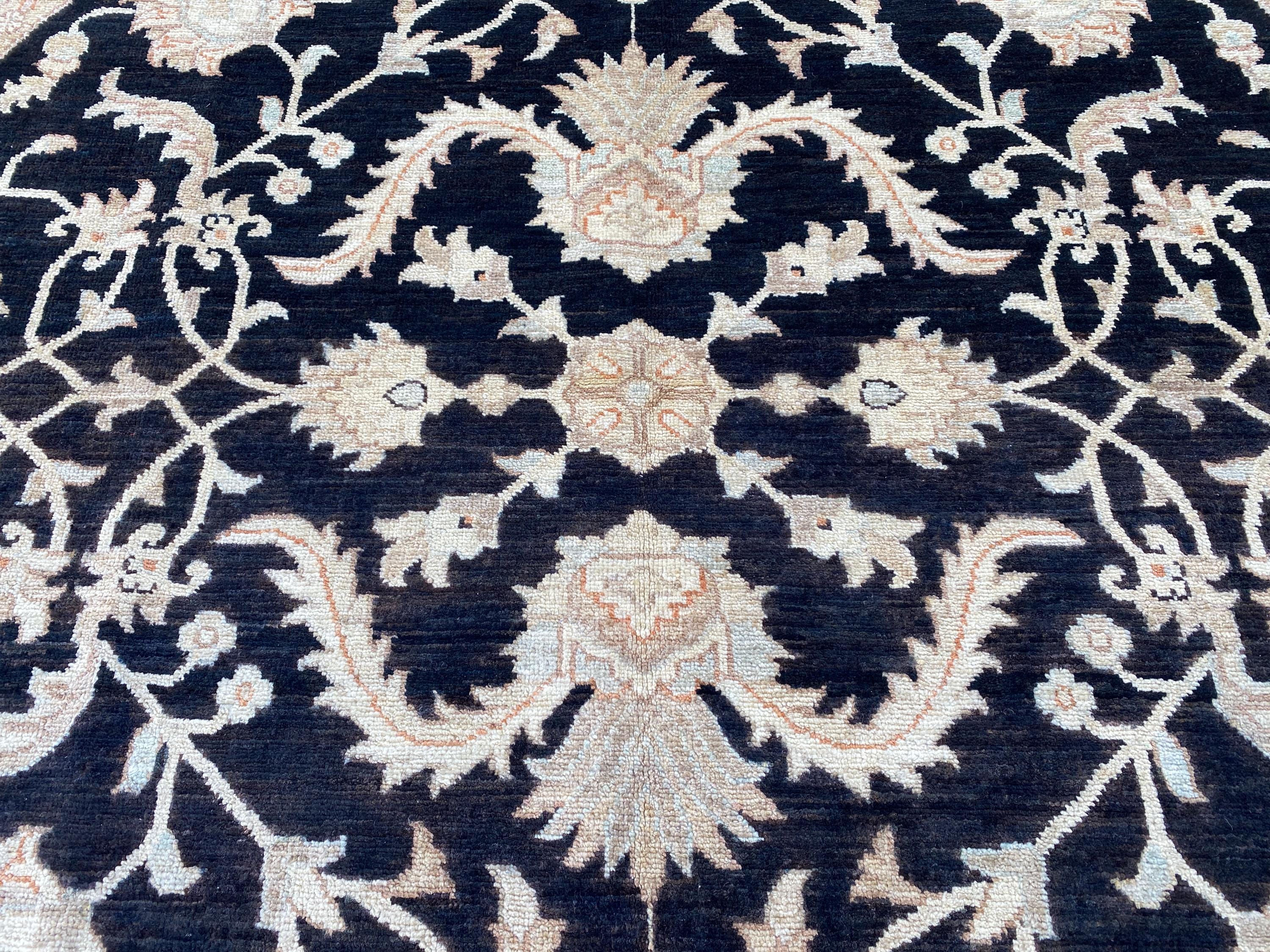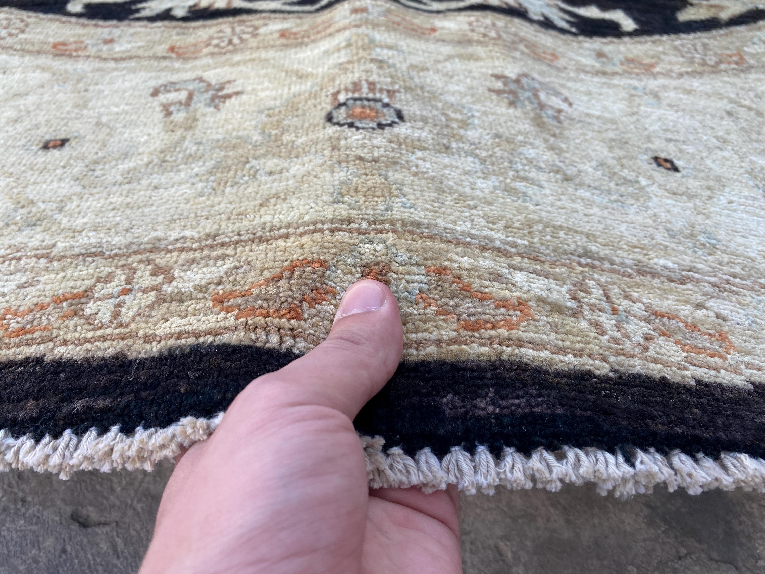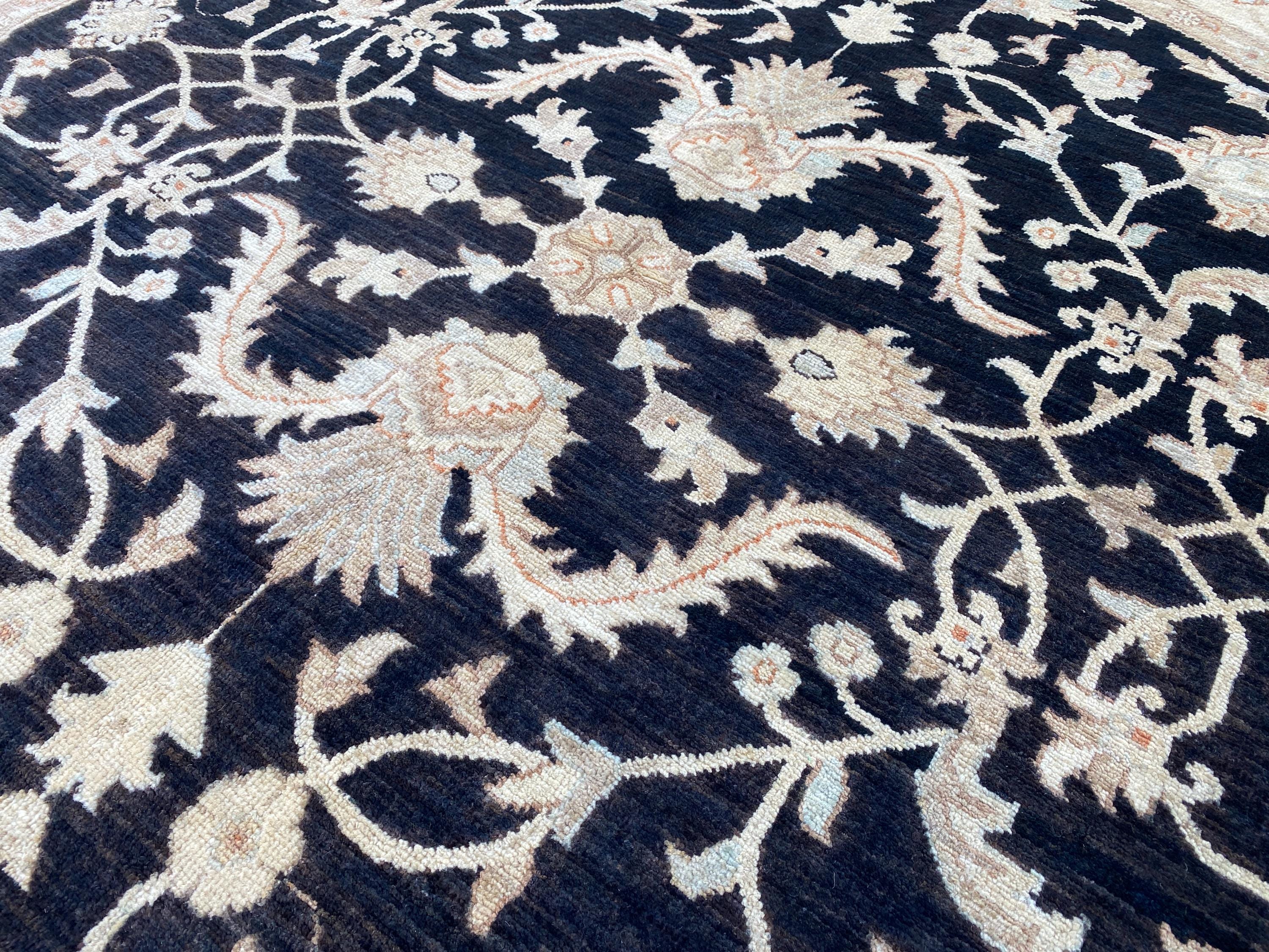 6x6 Black Beige Afghan Round Area Rug - Handspun Wool Turkmen Chobi Oriental Circle Rug - Floral Hand Knotted Ziegler Turkish Oushak Carpet