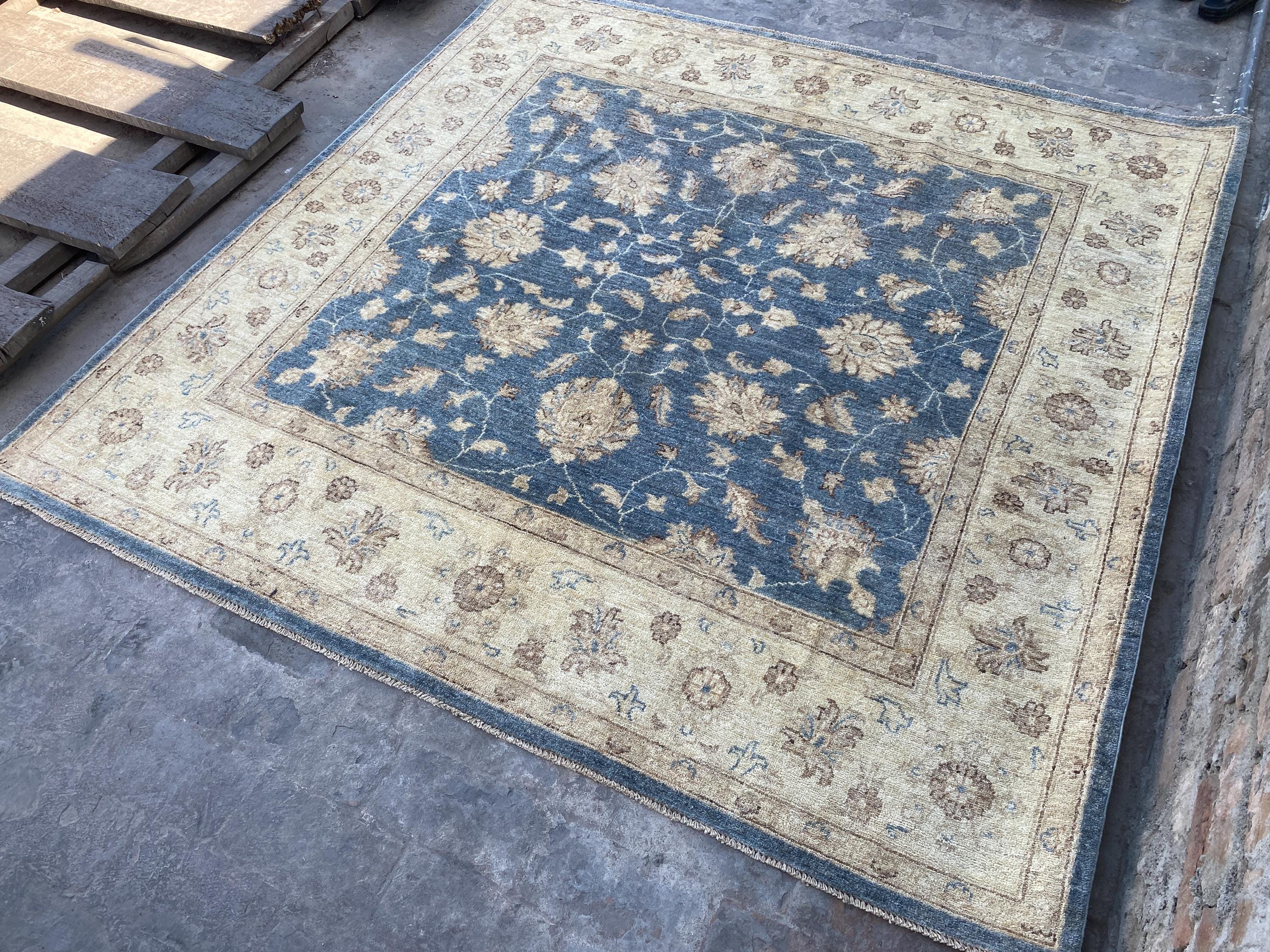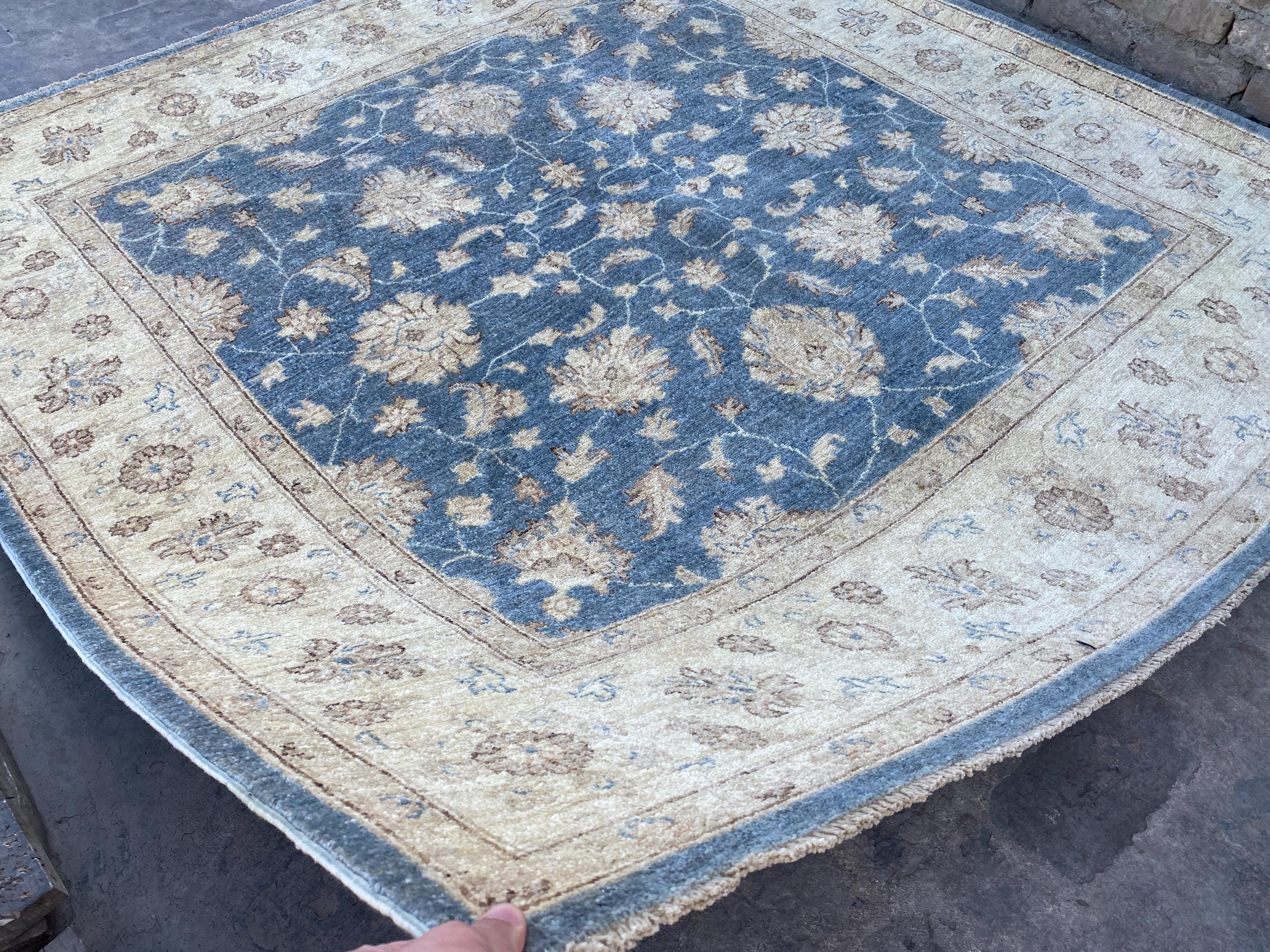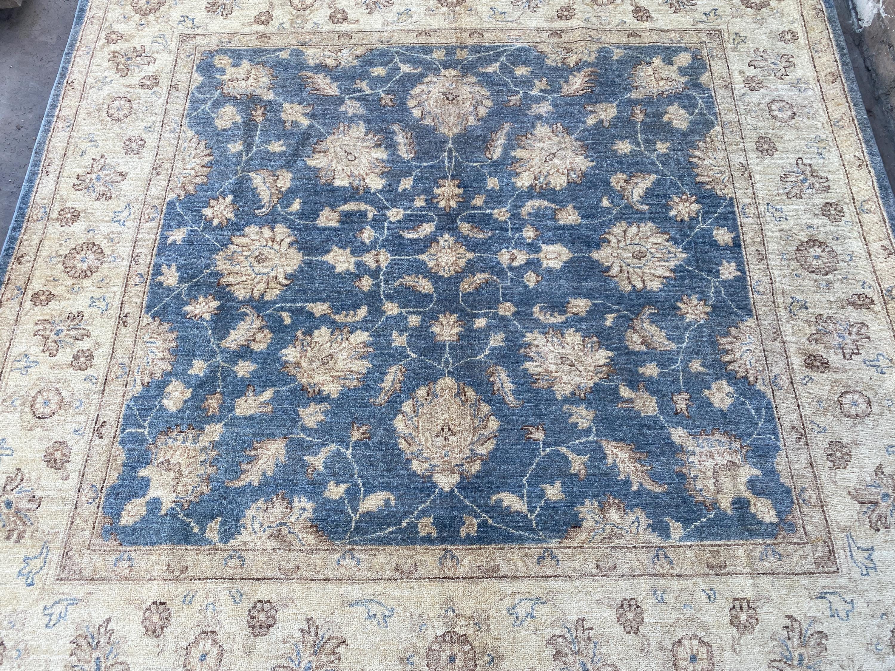 6x6 Soft Navy Blue Ziegler Area Rug - Afghan Chobi Hand Knotted Oriental Rug - Floral Turkish Oushak Tribal Wool Rug - Square Bedroom Carpet