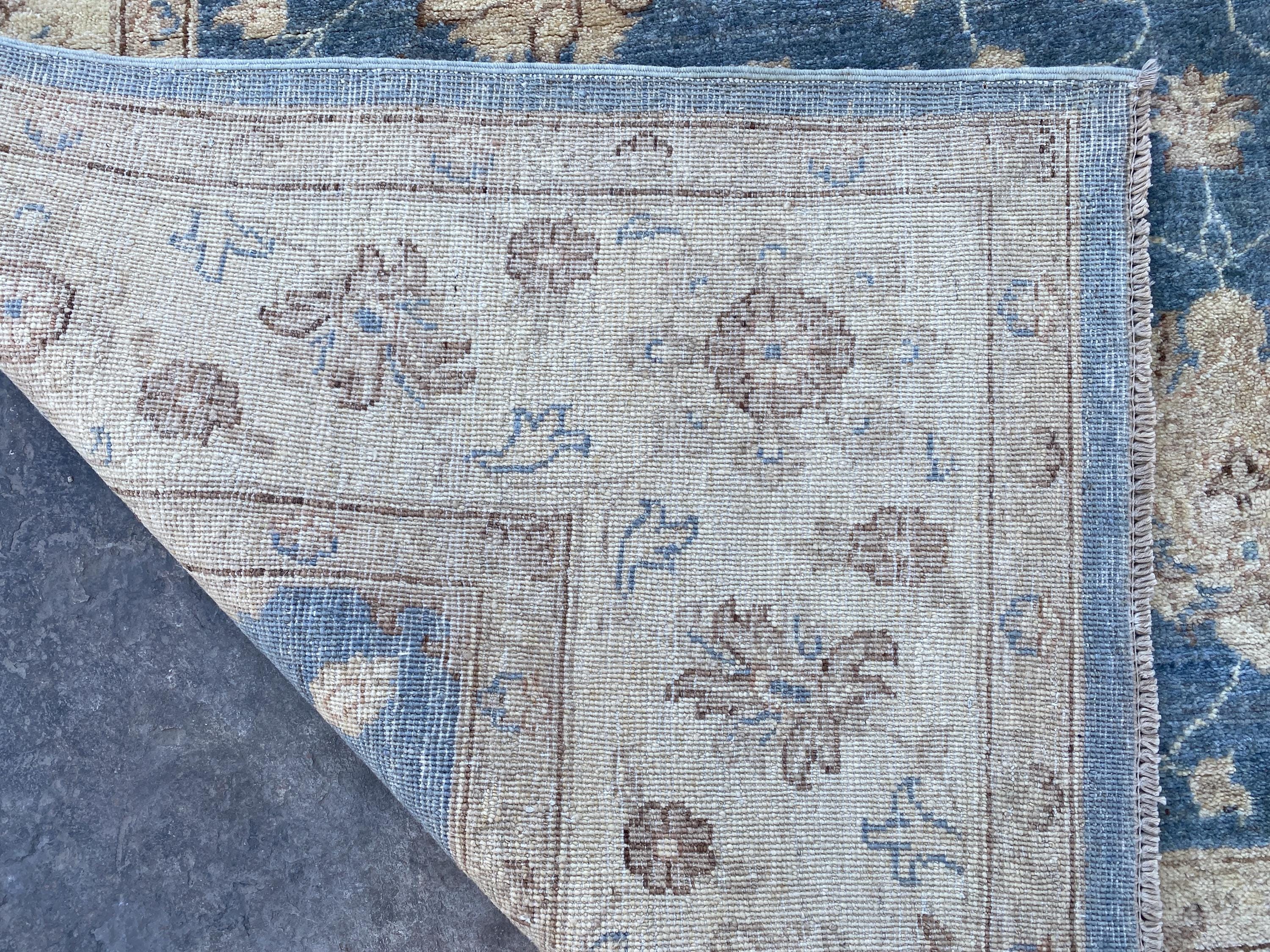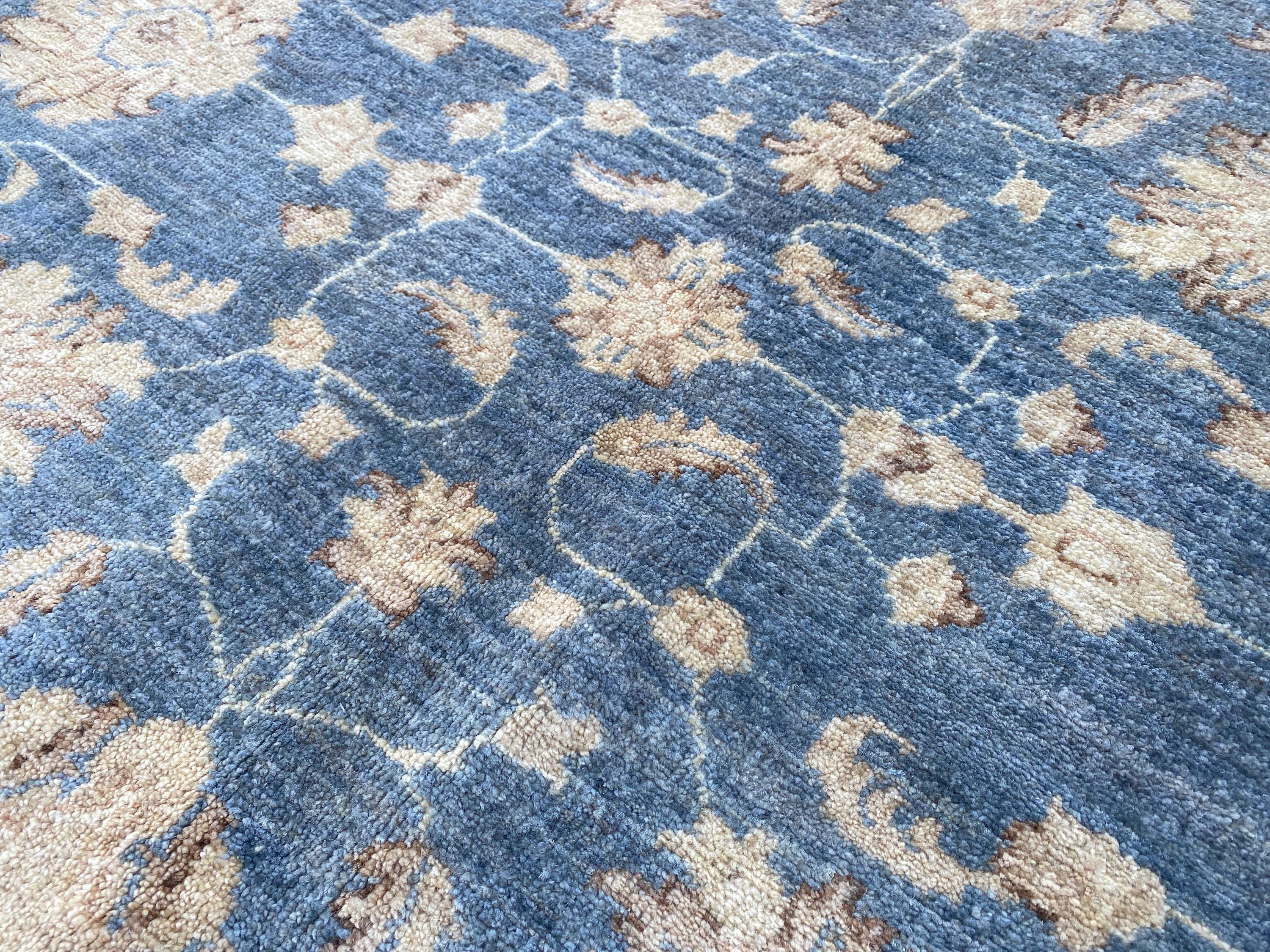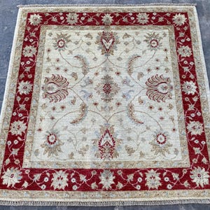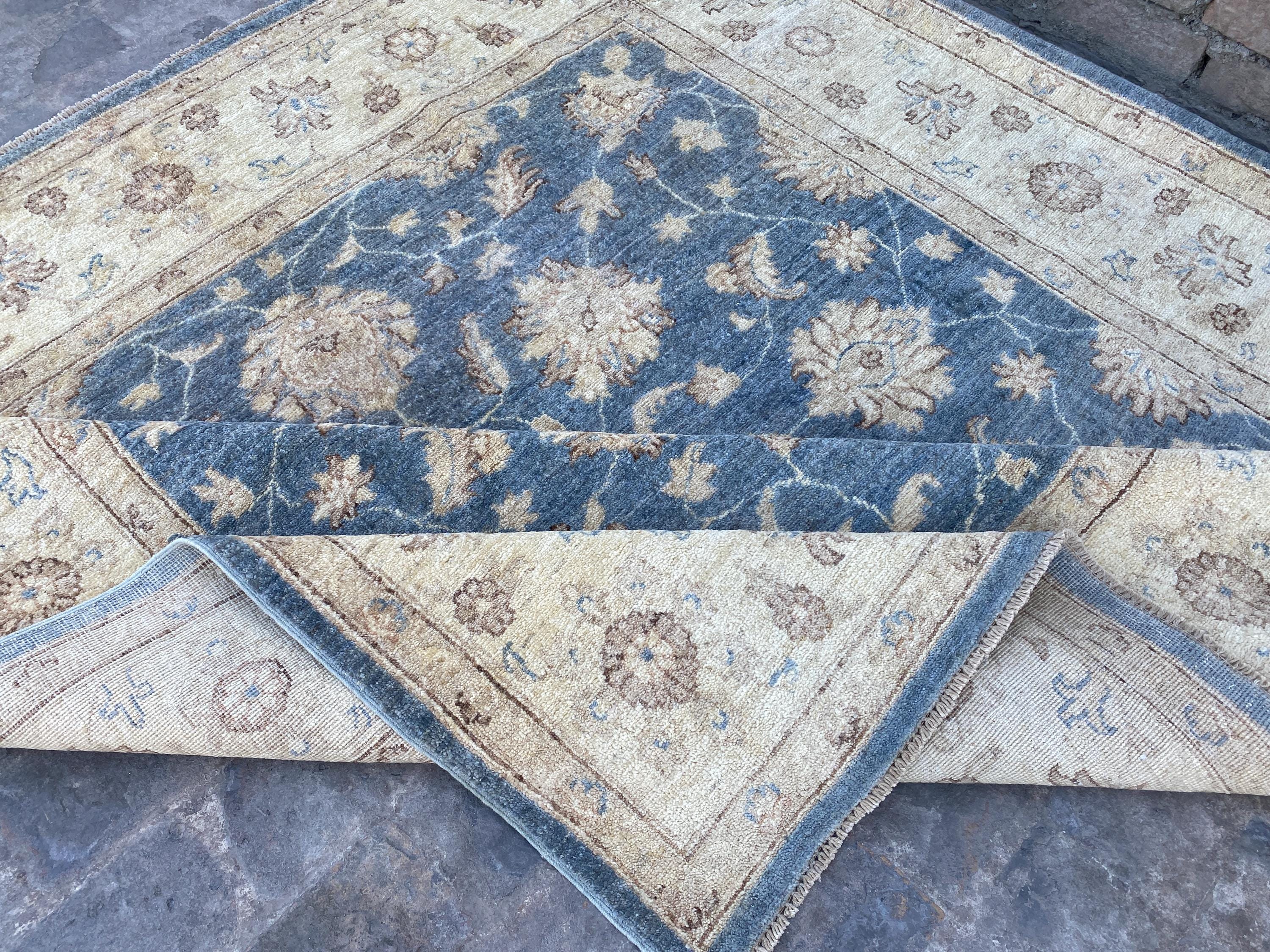 6x6 Soft Navy Blue Ziegler Area Rug - Afghan Chobi Hand Knotted Oriental Rug - Floral Turkish Oushak Tribal Wool Rug - Square Bedroom Carpet