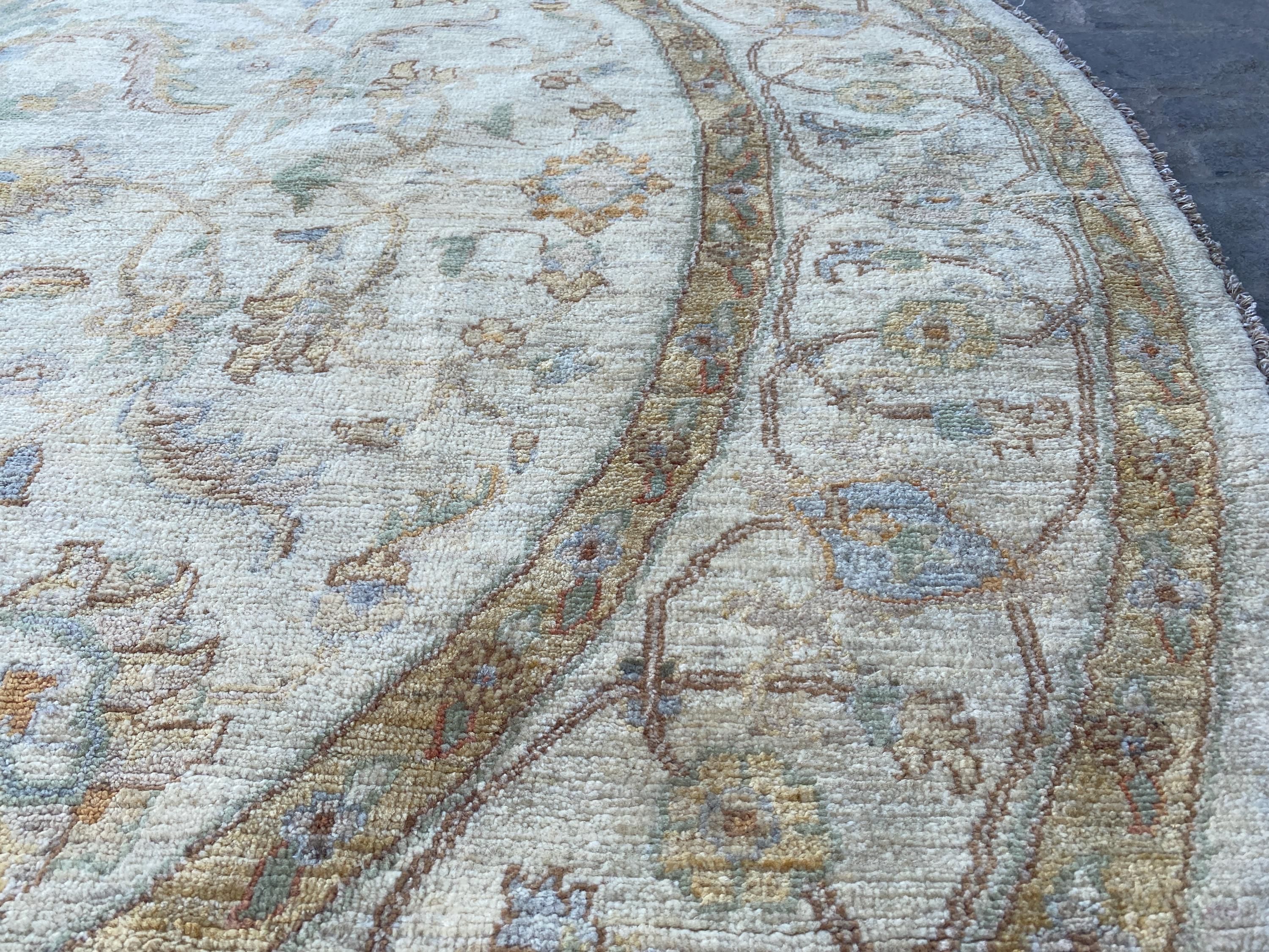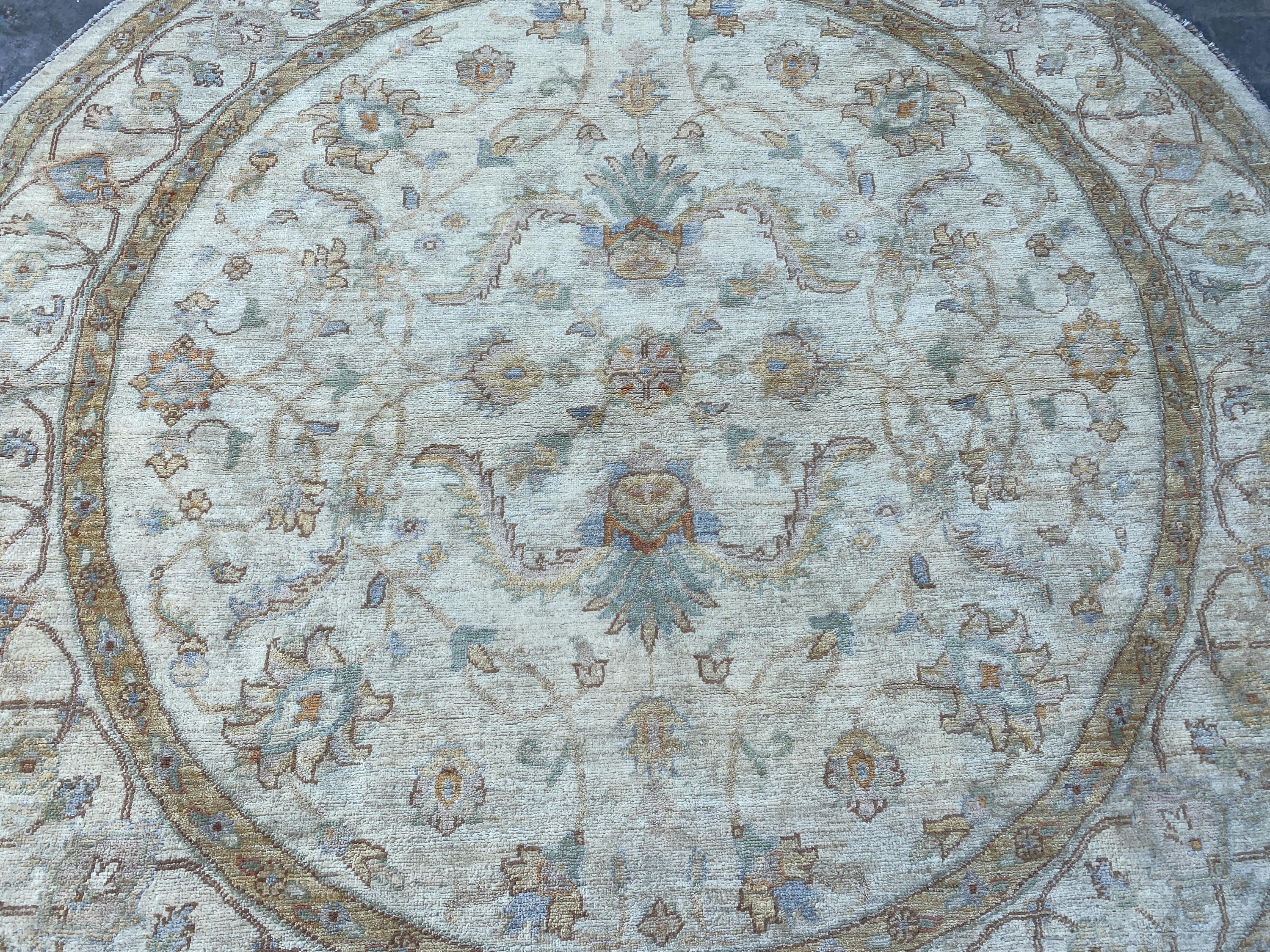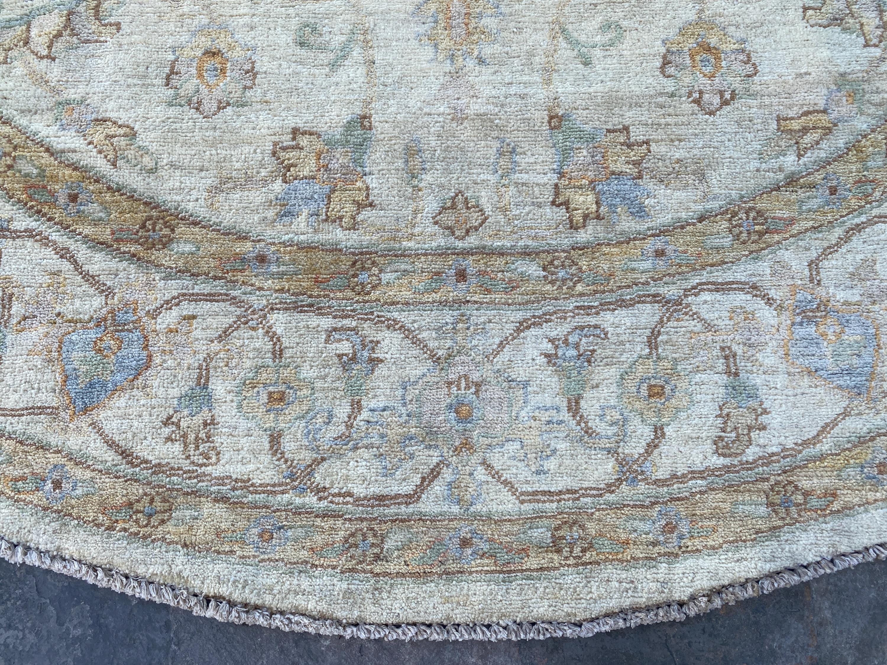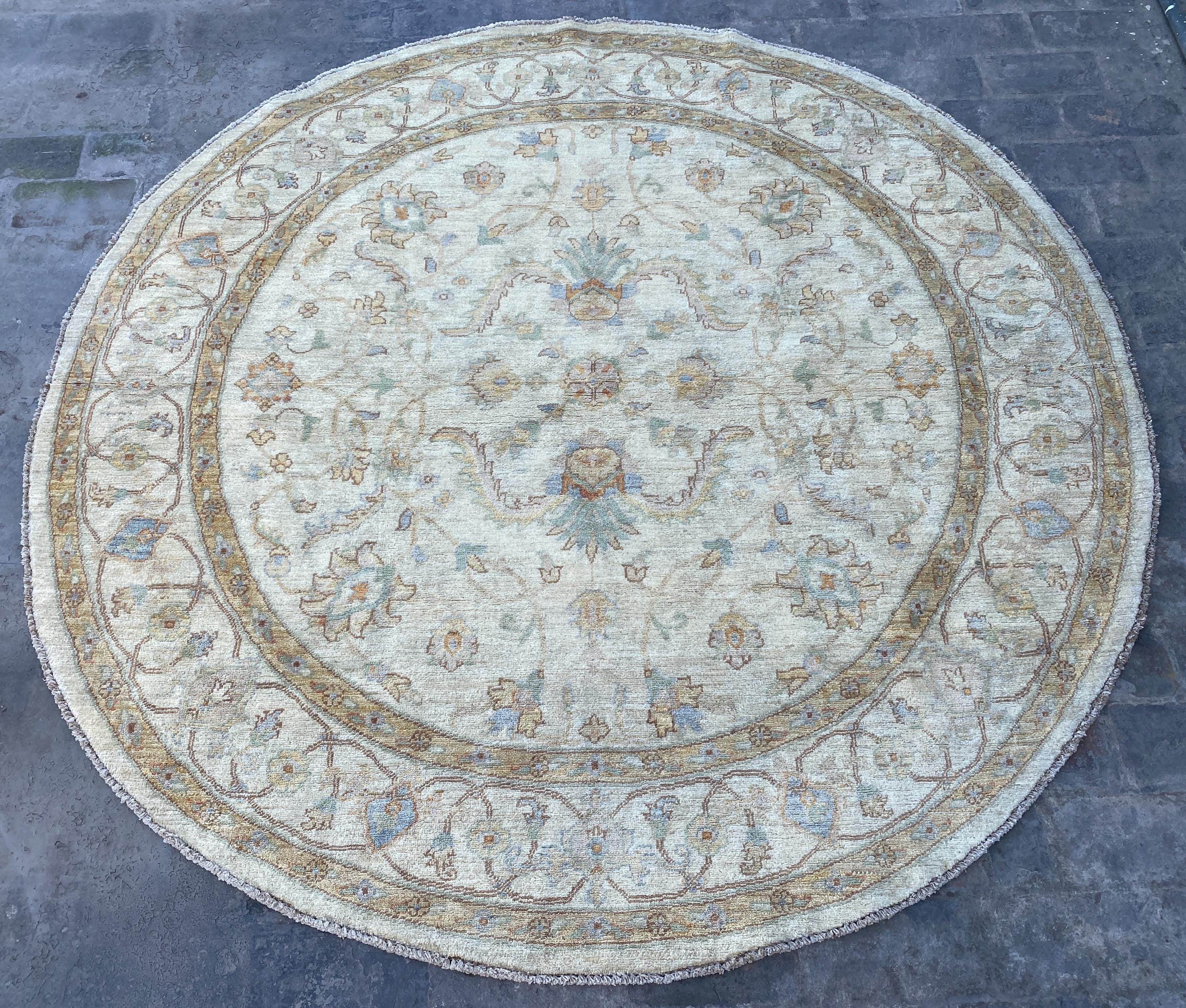 6x6 White Turkmen Round Area Rug - Afghan Hand Knotted Ziegler Rug - Turkmen Chobi Handspun Wool Rug - Turkish Oushak Circle Oriental Rug