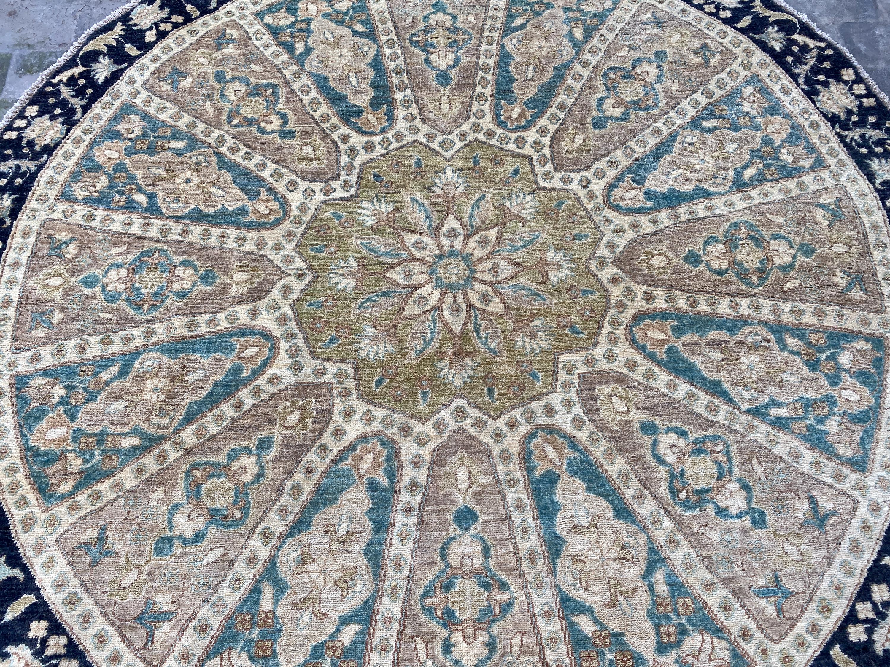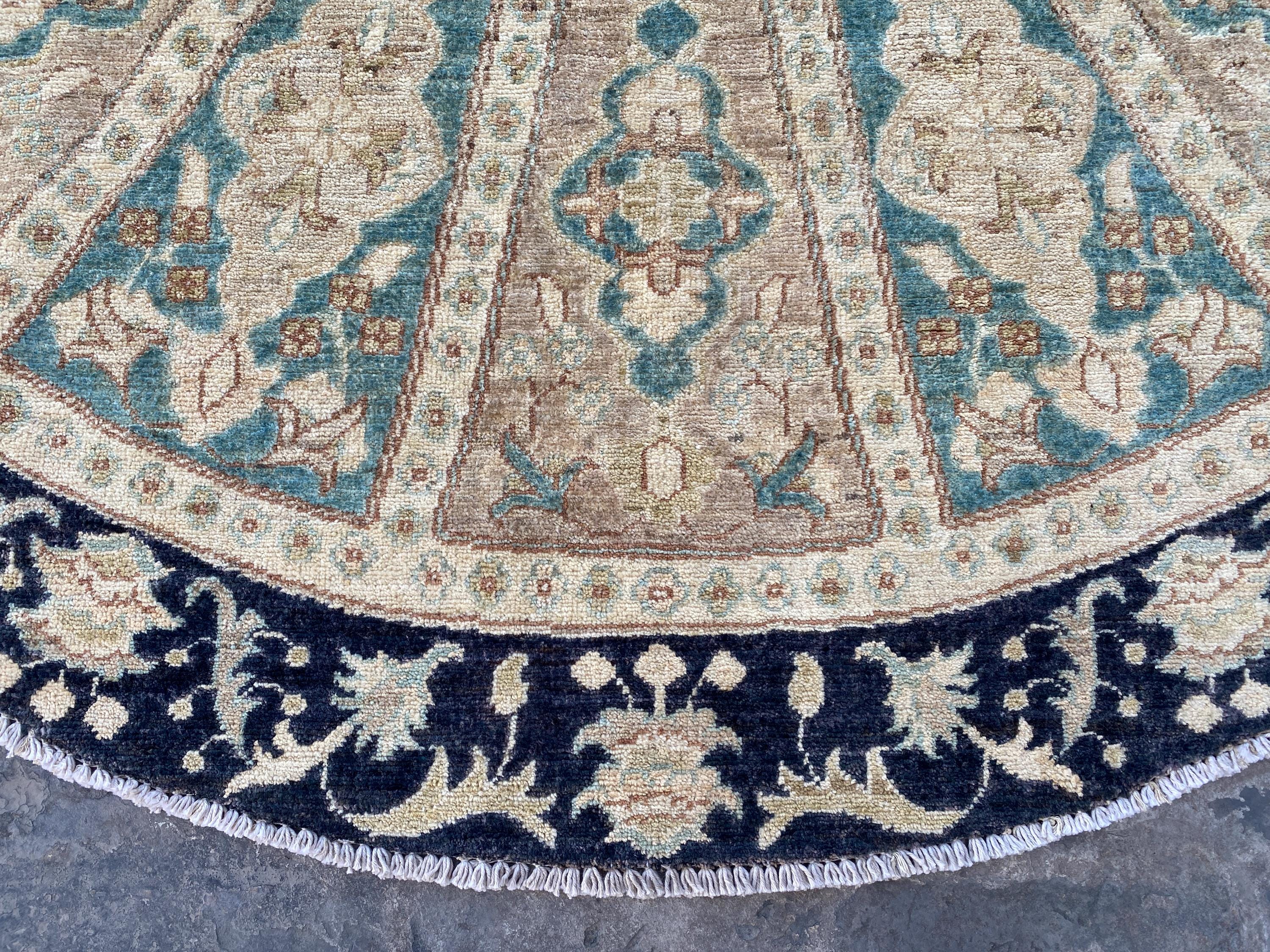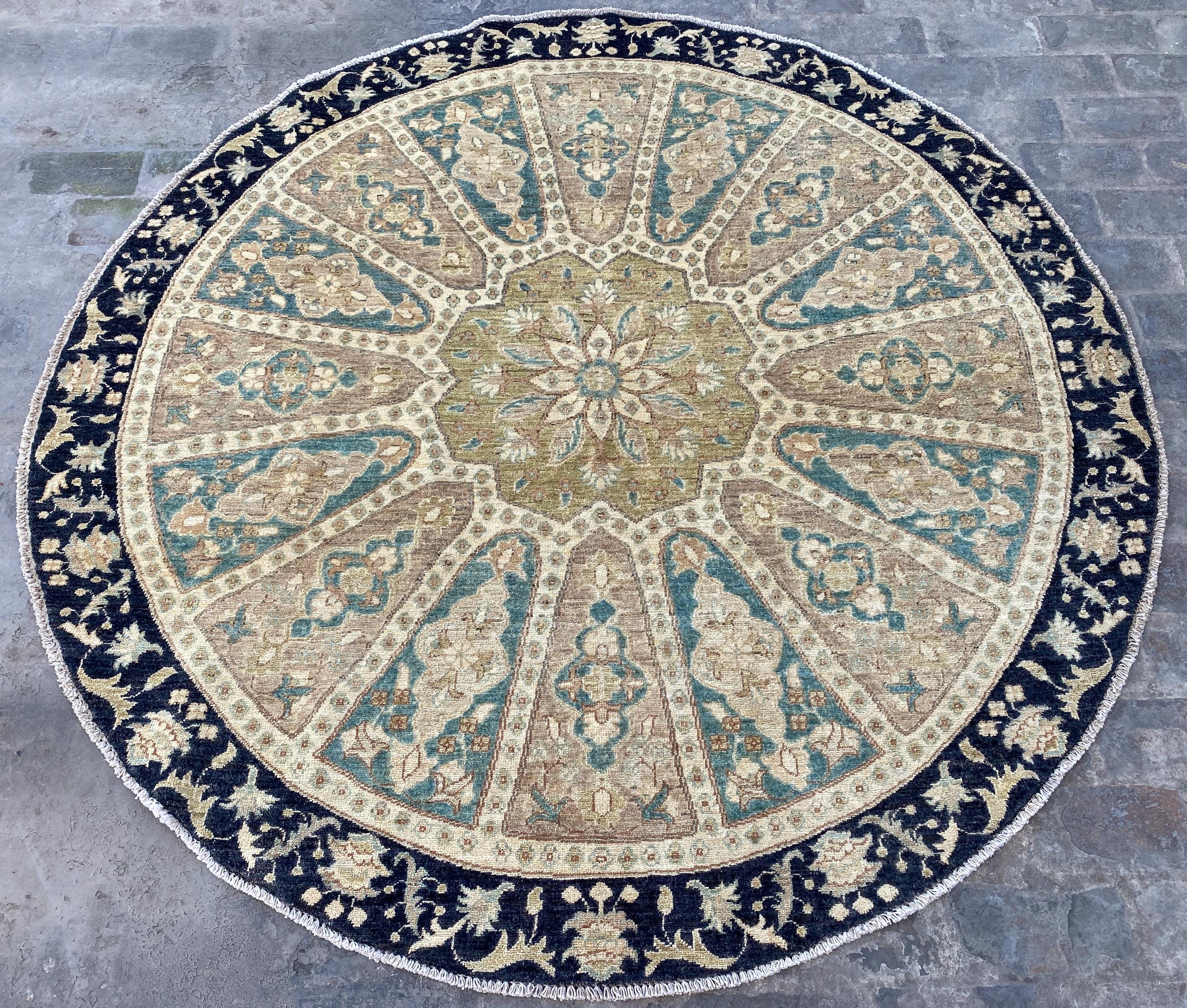 6x6 Pistachio Turkmen Serapi Tribal Oushak Table Area Rug - Afghan Ziegler Modern Chobi Circle Shape Rug - Turkish Round Medallion Carpet