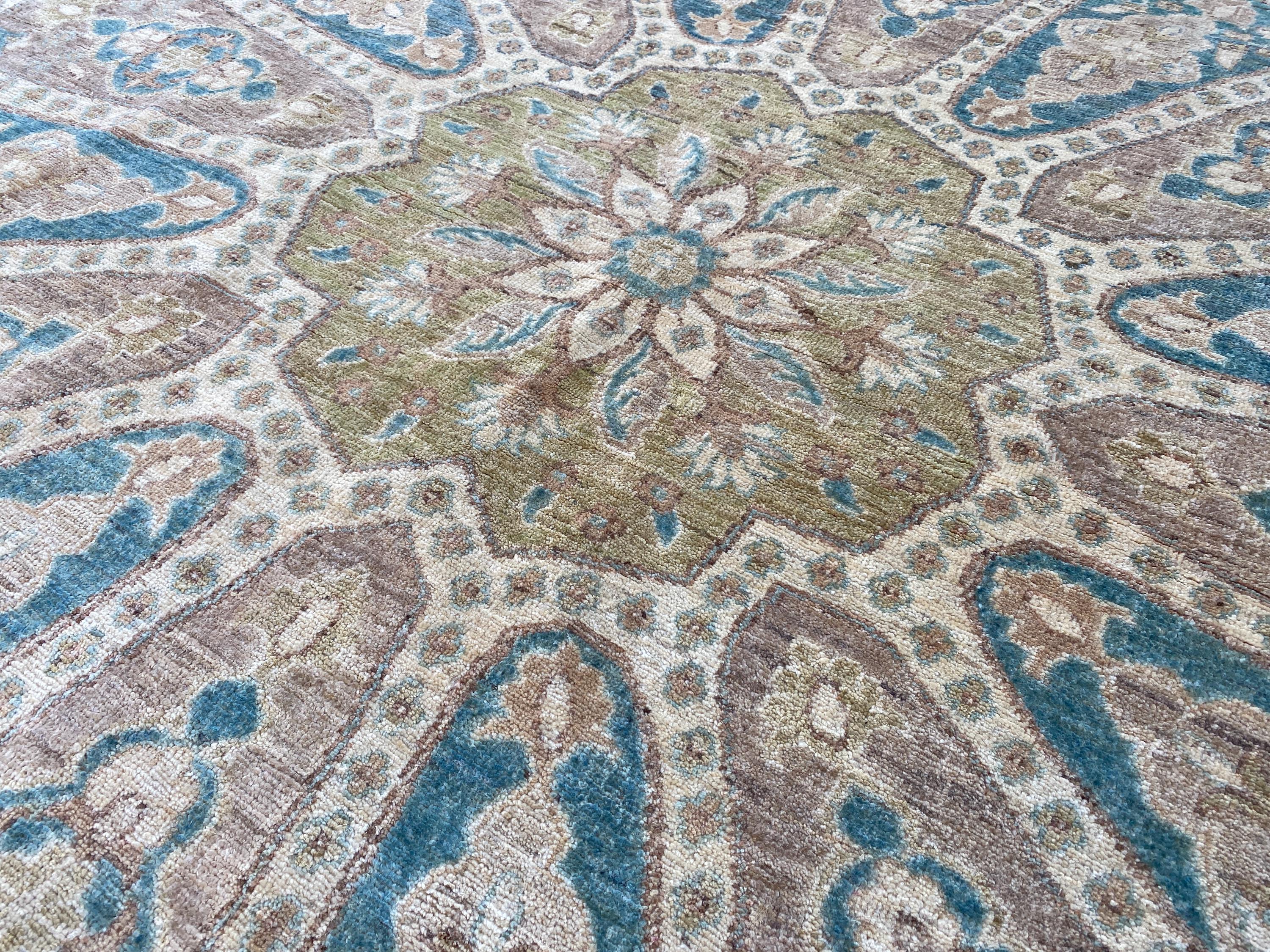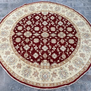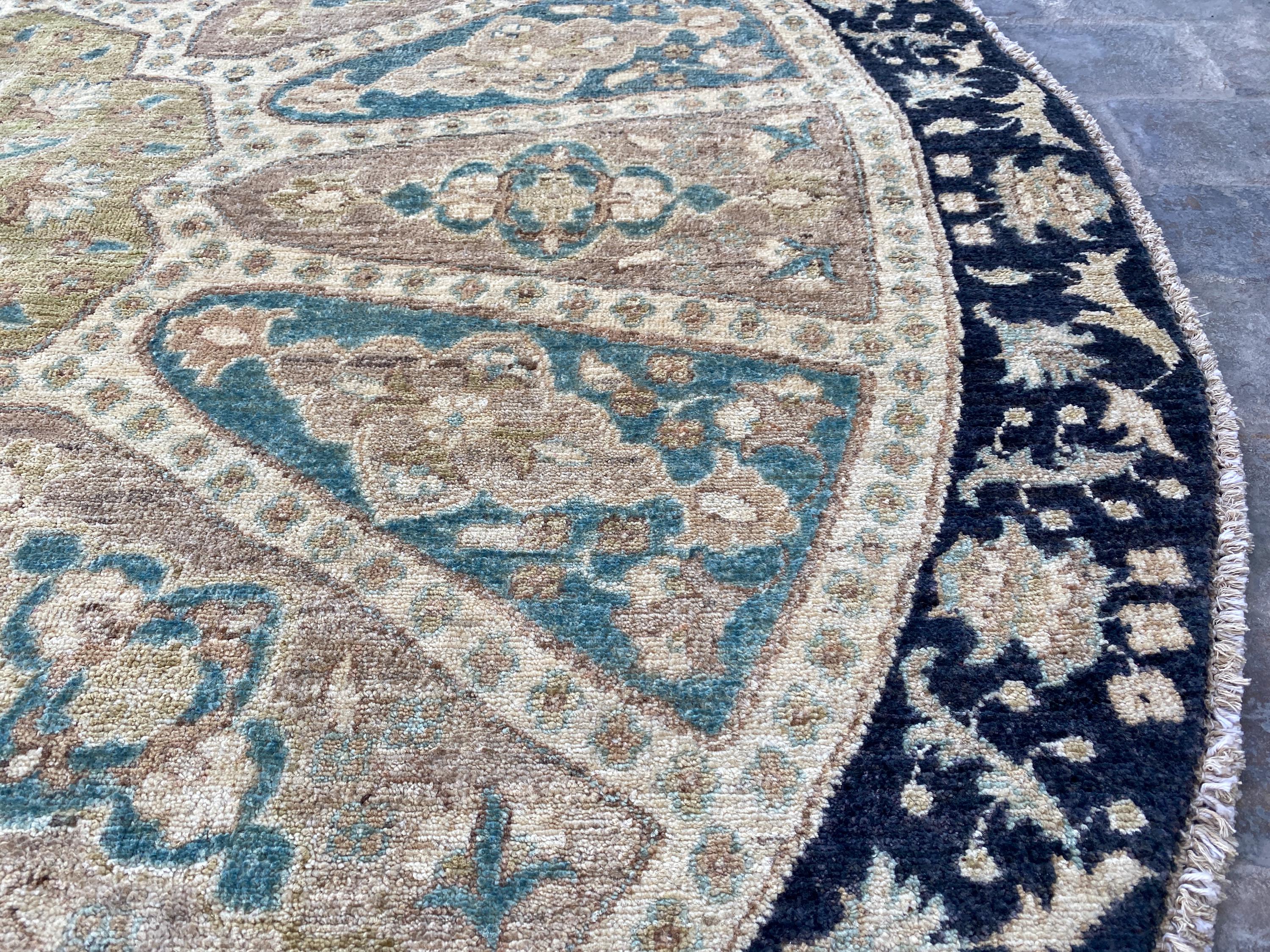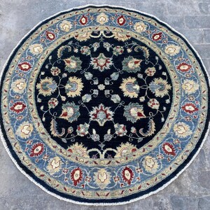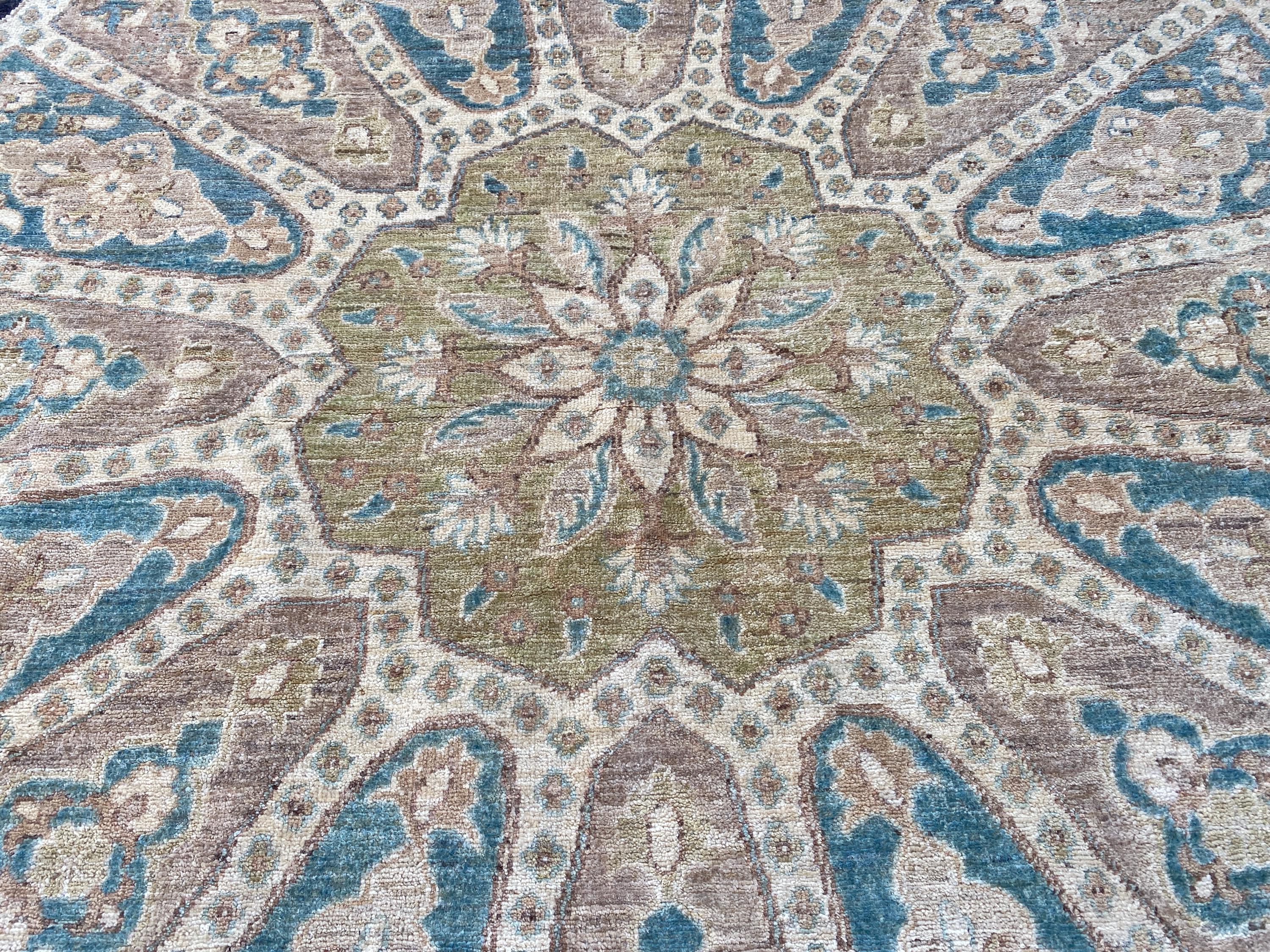 6x6 Pistachio Turkmen Serapi Tribal Oushak Table Area Rug - Afghan Ziegler Modern Chobi Circle Shape Rug - Turkish Round Medallion Carpet