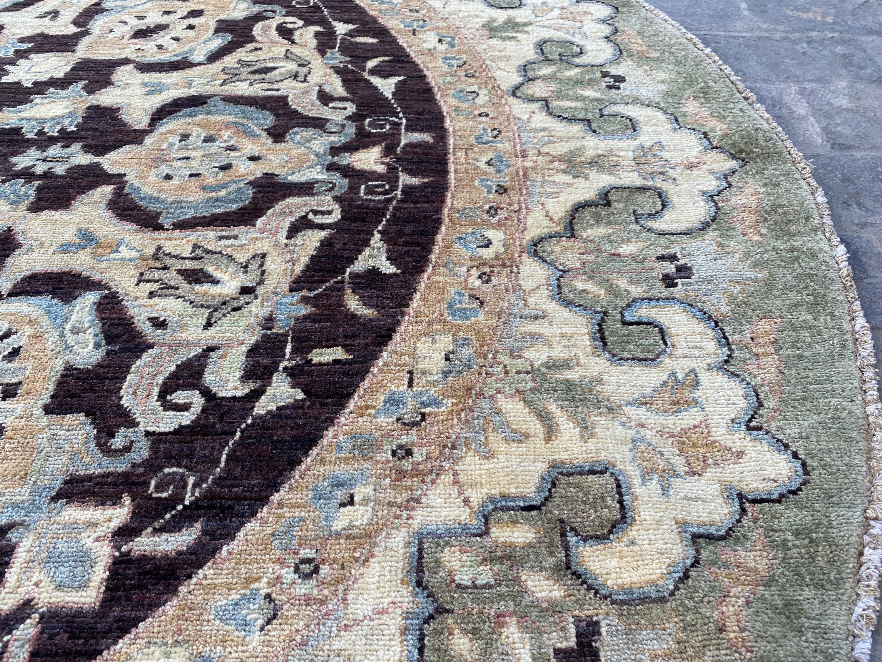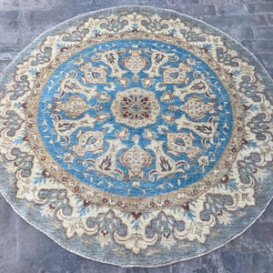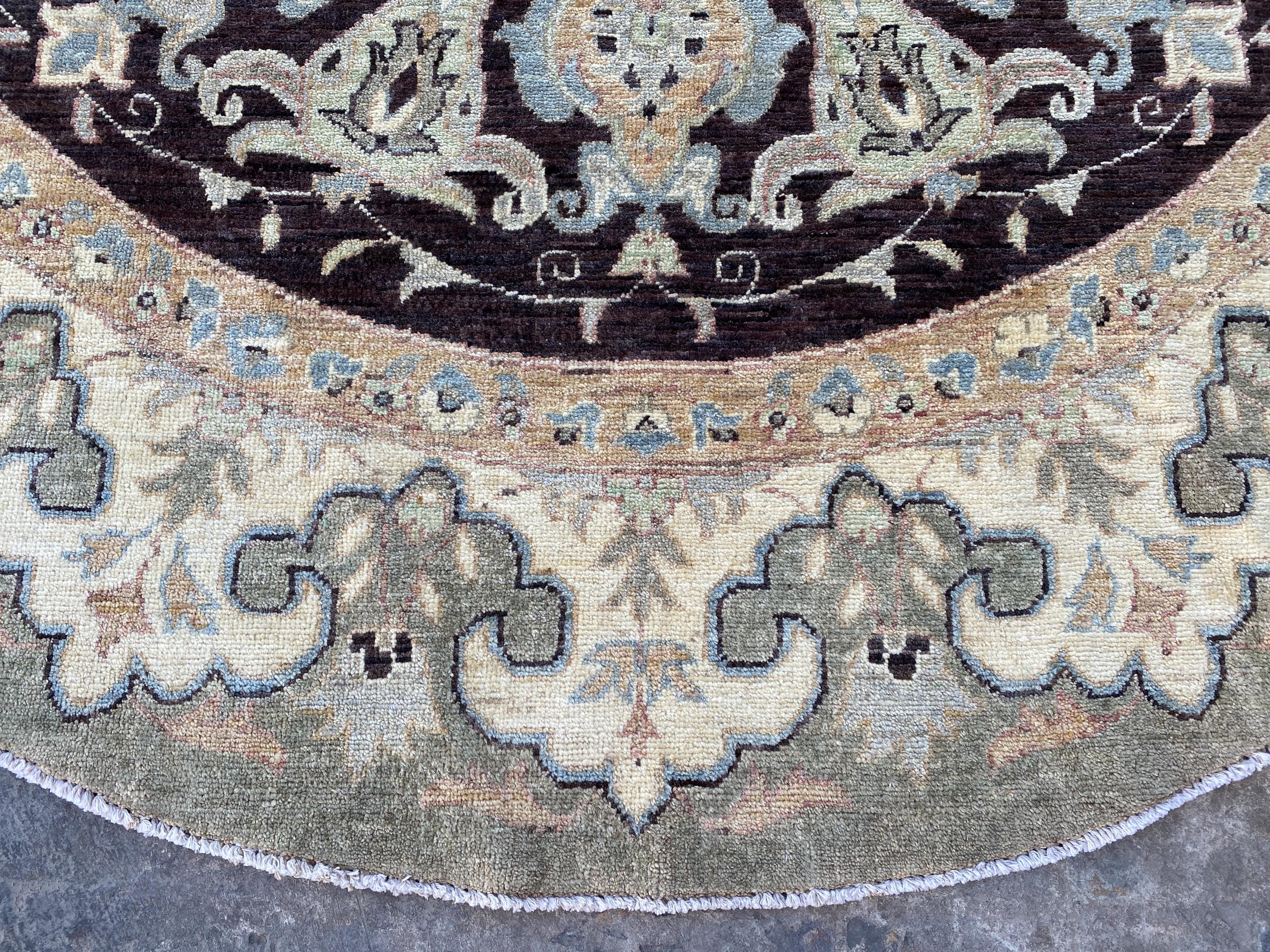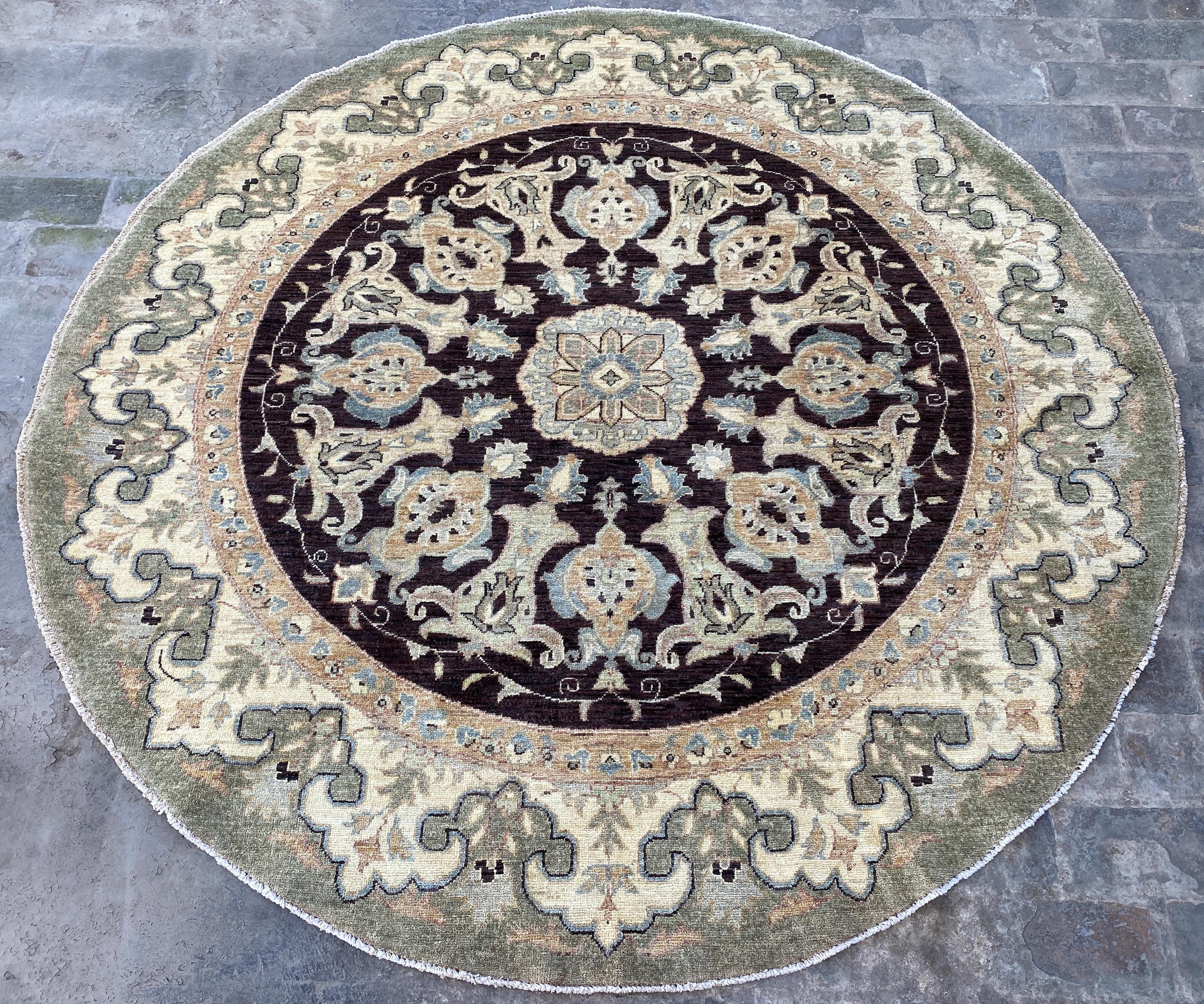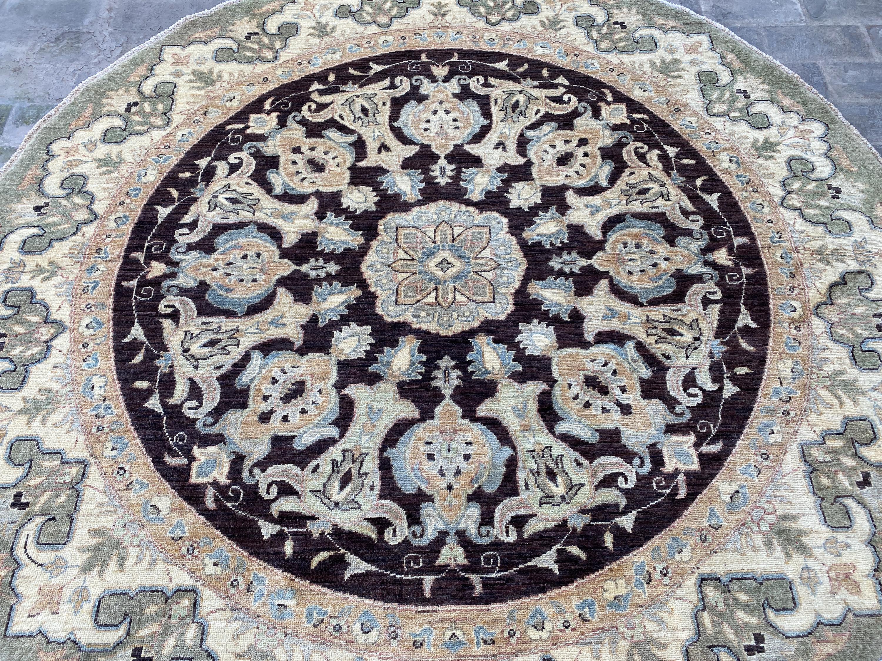 Black Beige 6x6 Afghan Round Area Rug - Hand Knotted Turkmen Circle Rug - Medallion Serapi Rug - Turkish Oriental Oushak Rug - Office Carpet