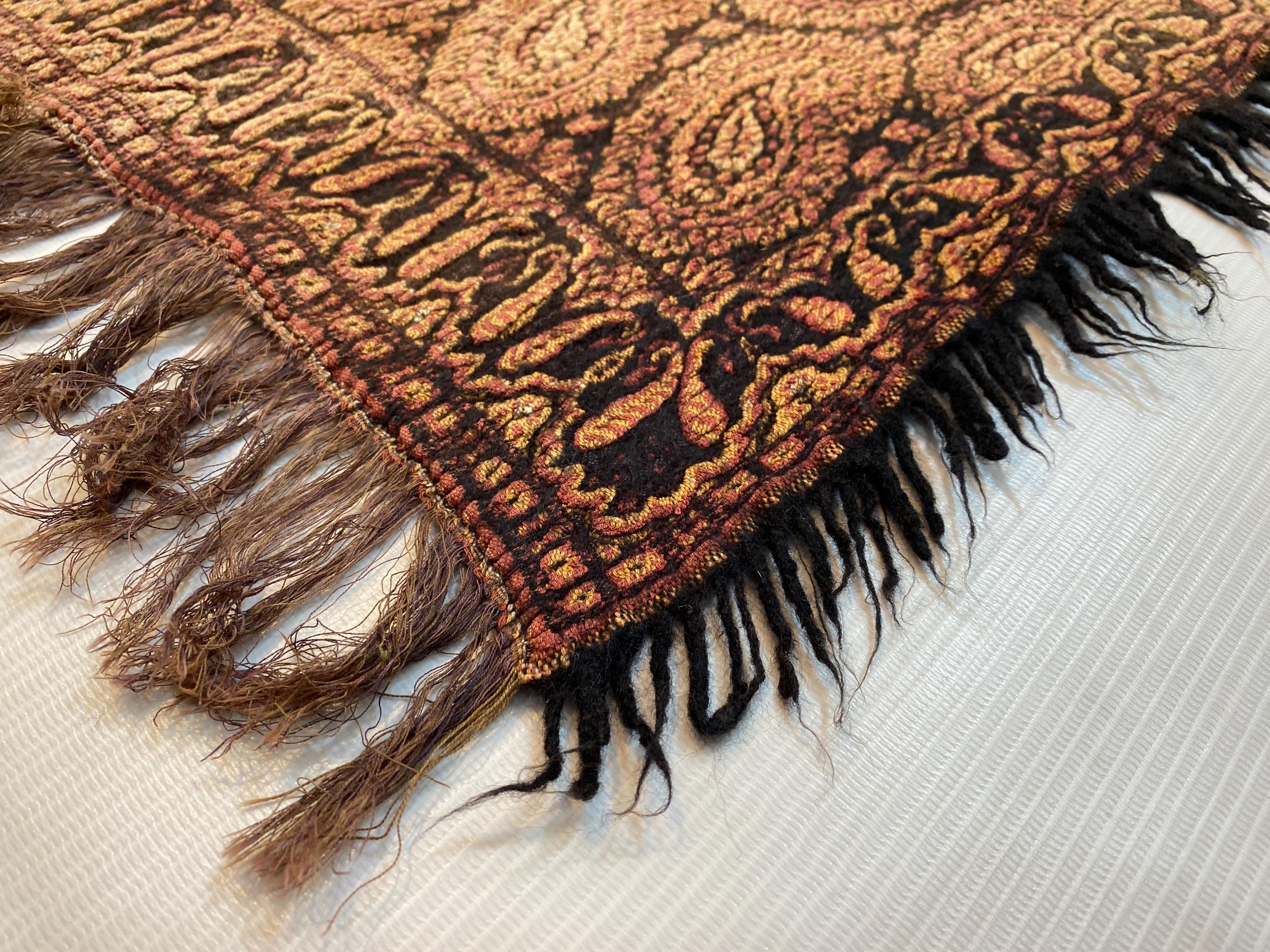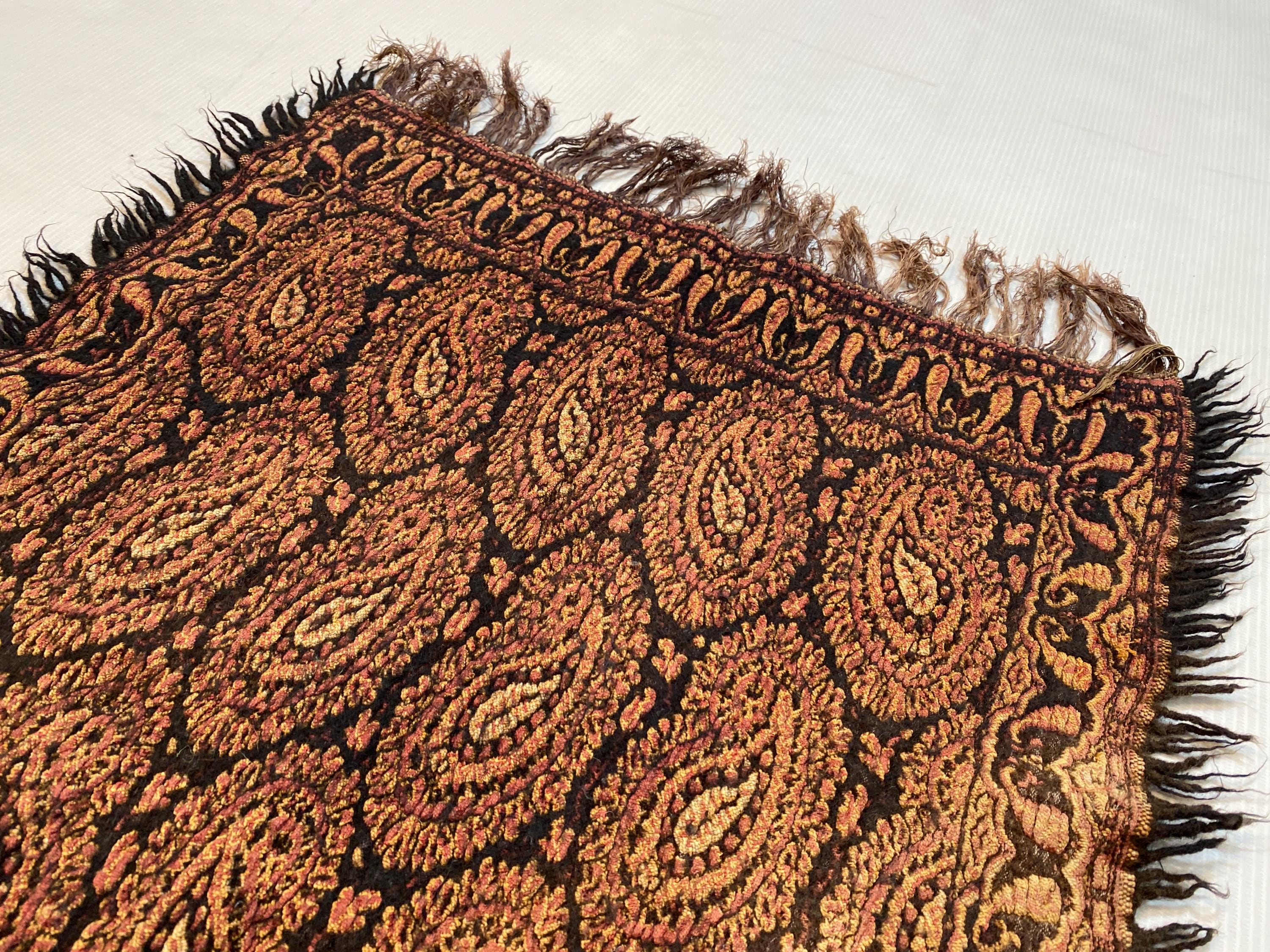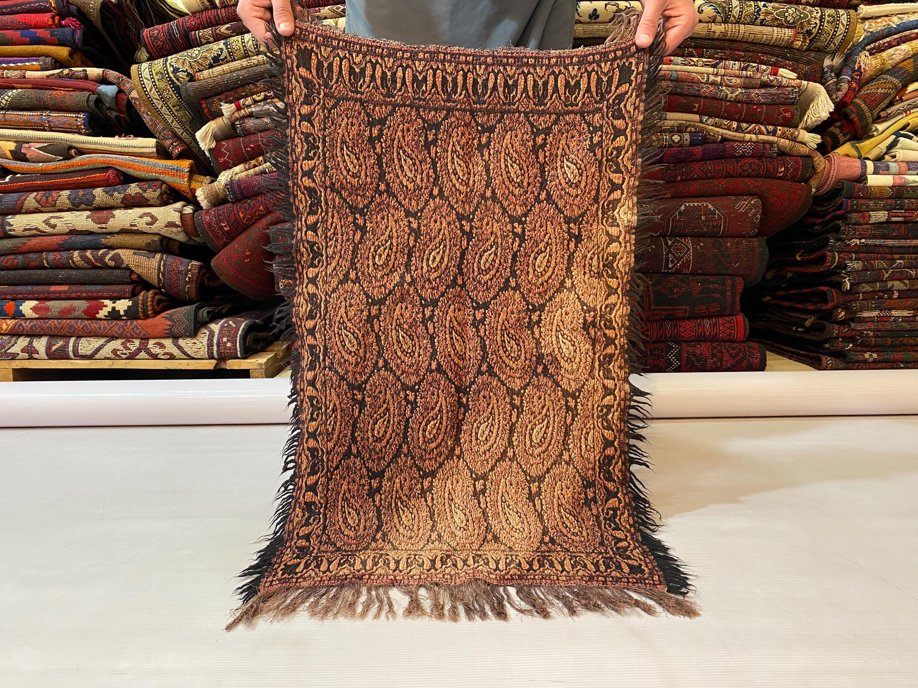 1.6x2.6 ft Paisley Antique Shawl - Table Decor Throw Shawl - Table Cloth Decor Shawl - Made In Kashmir - Woolen Shawl Home Decor Farmhouse